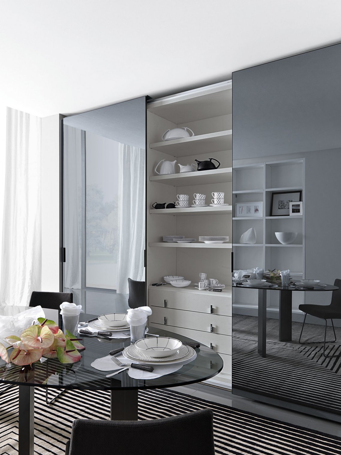 玻璃的透視感,鏡面的反射效應(yīng),淡色調(diào)系門板,完美提升了產(chǎn)品整體呈現(xiàn)的質(zhì)感。