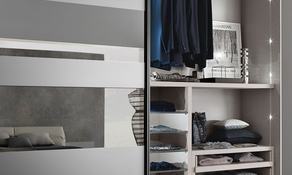 布置房間時(shí),寬敞的衣櫥絕對是一個(gè)亮點(diǎn)。Segmenta New移門,  以玻璃、亞光和高光烤漆的交替運(yùn)用,使衣柜實(shí)現(xiàn)個(gè)性化。