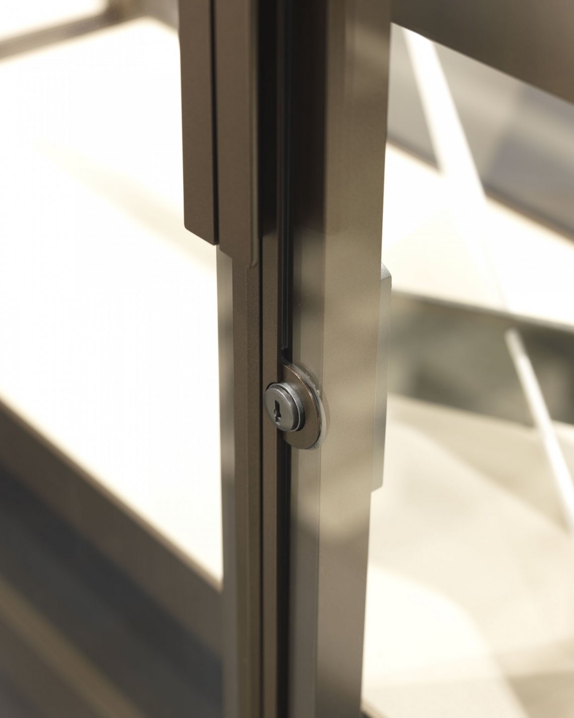 Elegant metallic profiles enhance the dimensional versatility of night systems; combined with the transparency of glass, they lend an extreme formal purity to surfaces. The dedicated handles become part