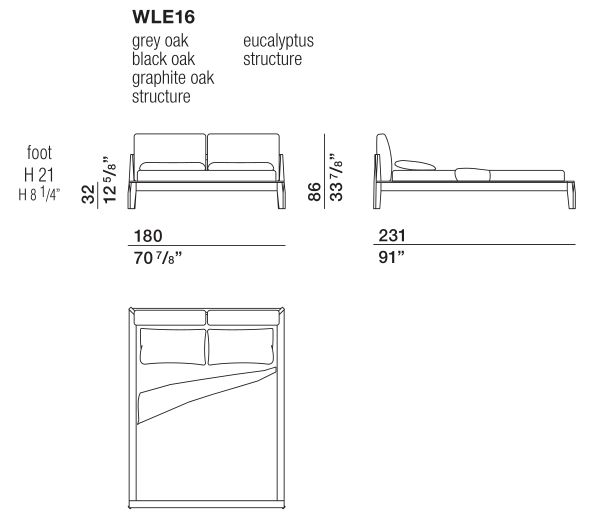 Wish是對木材的運用和對細節(jié)的關(guān)注,創(chuàng)造一個永恒的經(jīng)典的最好例子。線條極簡而精致,床頭帶有柔軟的織物或皮革靠枕,和木質(zhì)結(jié)構(gòu)結(jié)合的實木床?;疑蚝谏鹉?,淺或深榆木(內(nèi)部橡木染色)。桉木型號是由實木制成并貼木皮。
