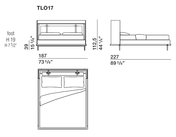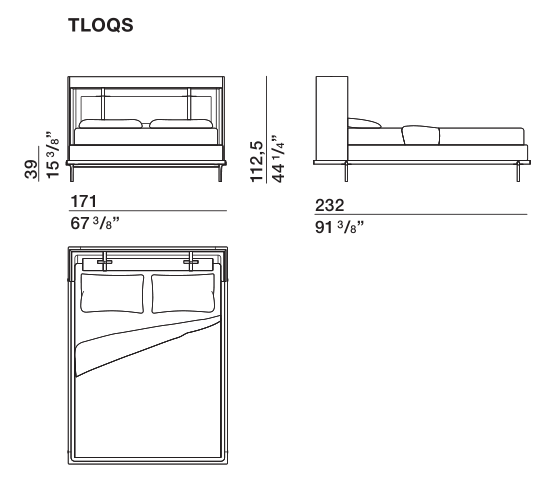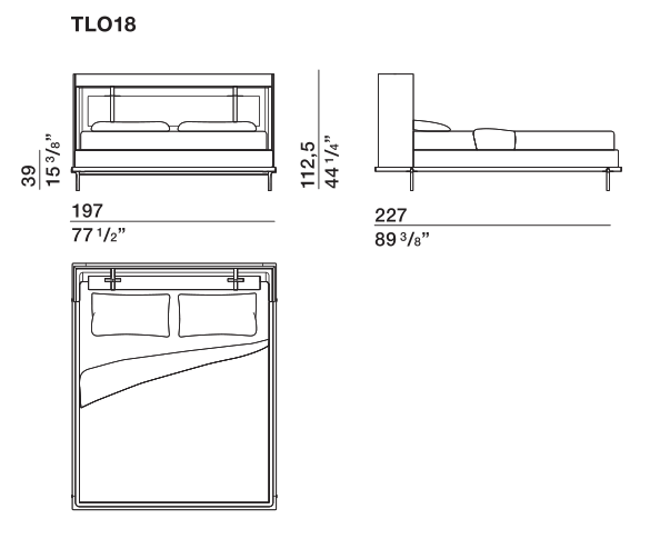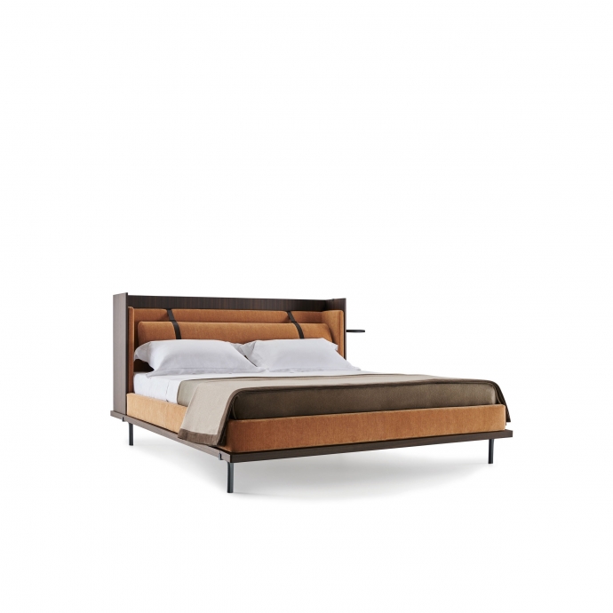 靠枕通過(guò)兩條不同顏色的皮帶固定在床頭上,明確表達(dá)了設(shè)計(jì)師對(duì)細(xì)節(jié)的關(guān)注。床頭 木制外側(cè)板上有兩個(gè)圓形的懸空小托盤(pán),起到床頭柜的功能。如果床的位置在房間中 央,TWELVE A.M. 大床的床頭背面還可以配搭一個(gè)小折疊擱板。