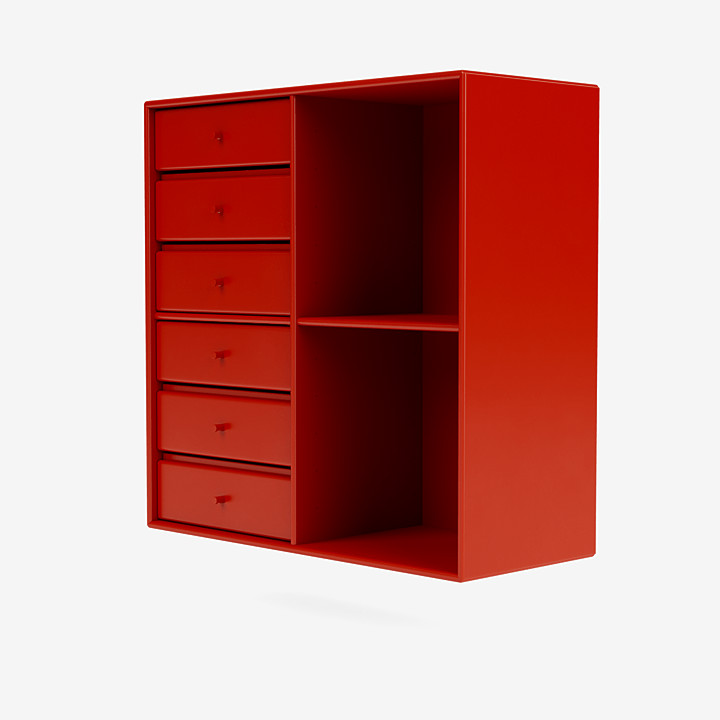 1623 架子有六個抽屜和兩個大型開放式隔間。該模塊提供了封閉式存儲空間和開放式隔間的實用且迷人的組合。開放空間非常適合展示您最喜歡的書籍、最美麗的花瓶或漂亮的碗。抽屜給人一種觸覺上的享受,因為它們可以輕松滑開,露出寬敞的內(nèi)部空間。該架子有 Montana 專門開發(fā)的 40 種環(huán)保漆色可供選擇。這一標志性設計為家中幾乎所有房間增添了實用性和多功能性。該擱板可單獨使用,也可與 Montana 擱架系統(tǒng)的其他模塊結(jié)合使用。1623 擱板深度有 30、38 和 46.8 厘米可供選擇,并配有涂漆手柄。