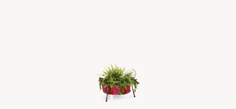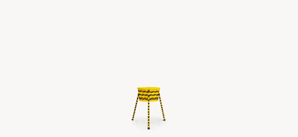 Struttura in acciaio verniciato e fili colorati in polietilene intrecciati a mano. Ordine minimo di 2 box contenenti 4 pezzi ciascuno.