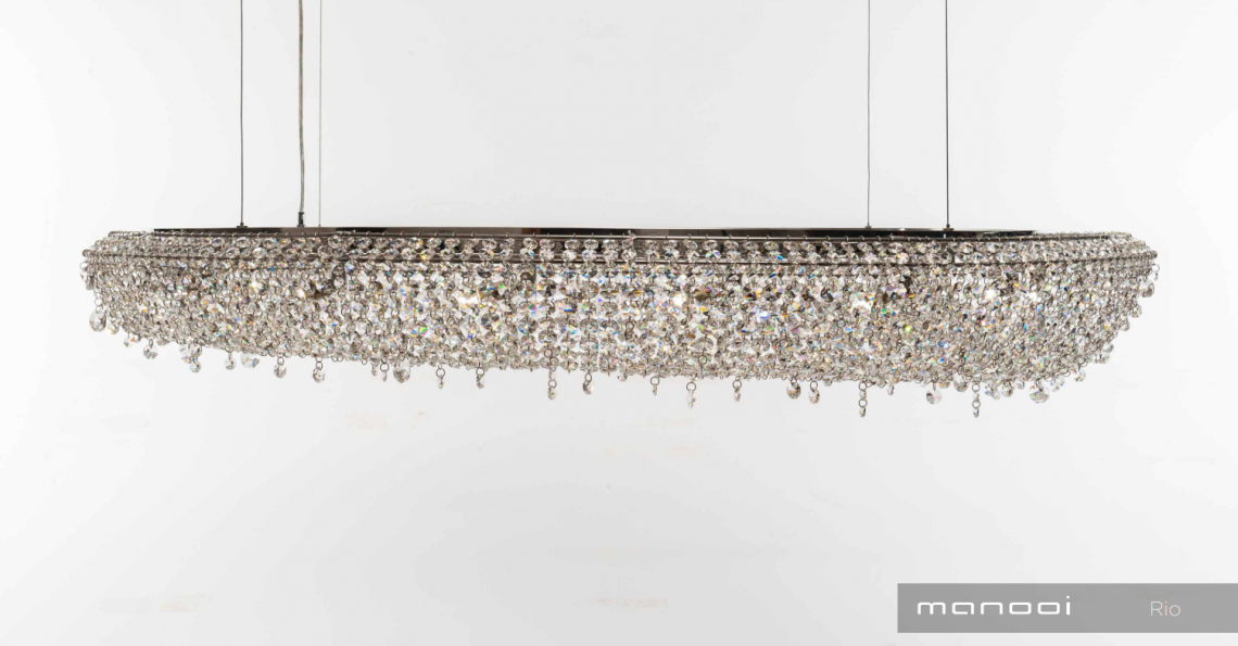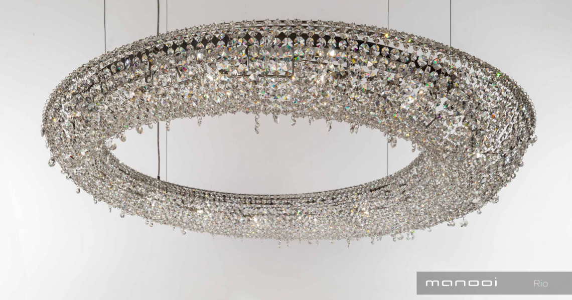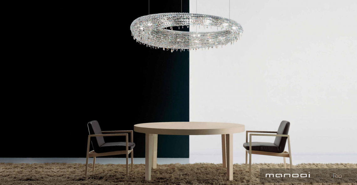 這盞枝形吊燈展示了重力在空間中的影響:RIO 是不對稱與完美規(guī)律的圓形相結(jié)合。對于那些希望改變?nèi)粘ΨQ形式的人來說,它是首選的枝形吊燈。
