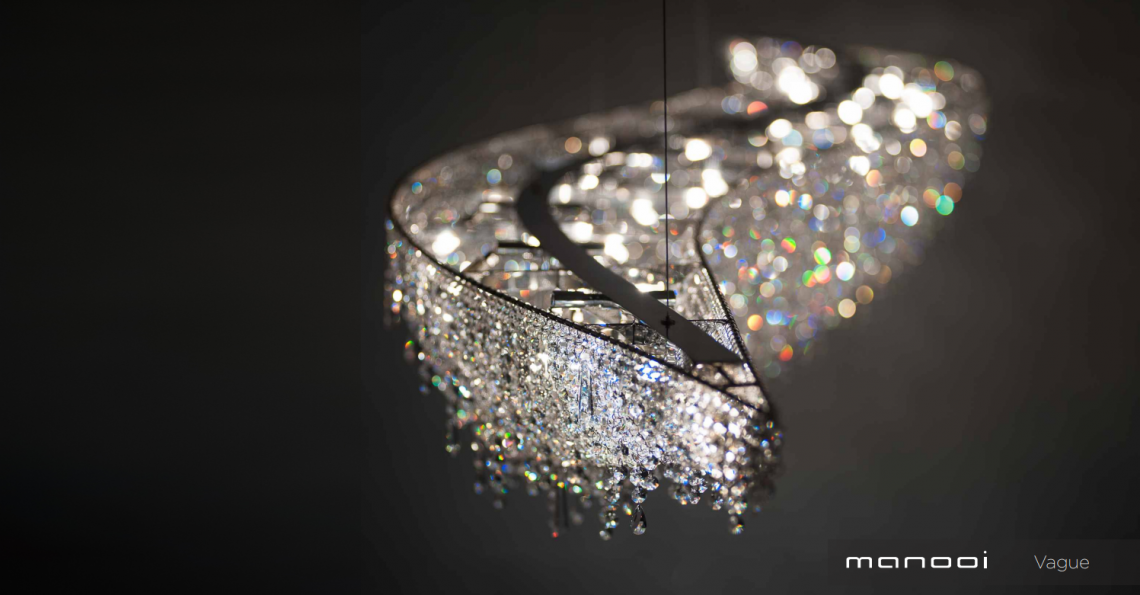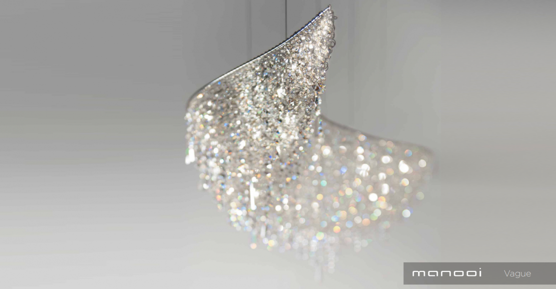 VAGUE 讓人想起超然平靜的海洋上的波浪,代表了下一代 Manooi 枝形吊燈,是 Crystalight 系列的先驅(qū)。VAGUE 憑借其動(dòng)感的形狀和正弦曲線的外觀,展示了水晶的真正潛力,并展示了 Manooi 最優(yōu)秀的專業(yè)知識(shí)。它可以單獨(dú)安裝,也可以安裝在不同大小的集群中。