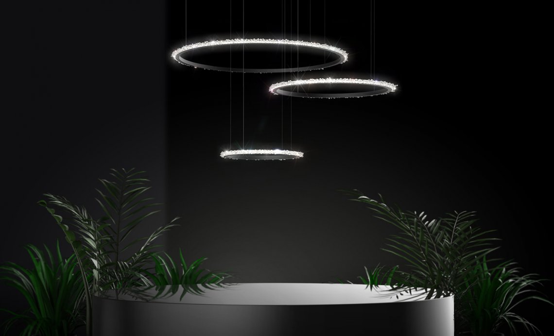 HALO 的設(shè)計(jì)旨在通過使用最少的物質(zhì)來保持明顯的通風(fēng),而不會(huì)影響質(zhì)量或呈現(xiàn)的效果。這件獨(dú)特的作品讓我們想起了光可以創(chuàng)造的卓越能力和現(xiàn)象。每一顆水晶都被精心組裝成細(xì)小的樹枝,像被霜覆蓋的光束一樣冒出來,將光線折射成成千上萬的火花。
