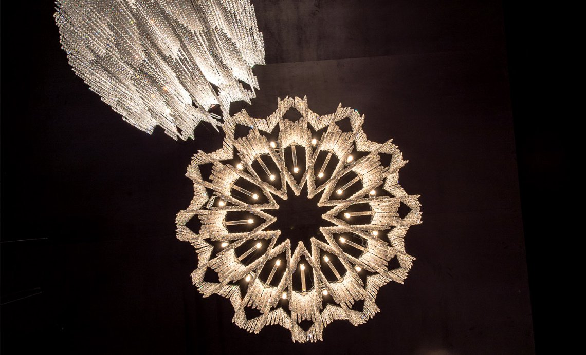 Manooi 的 BURJ 吊燈是一個空間的皇冠上的明珠,玩弄光影,營造出一種莊嚴的氛圍。