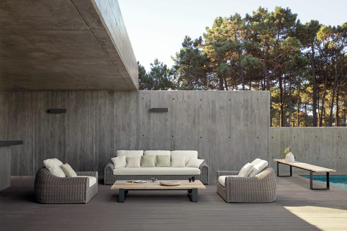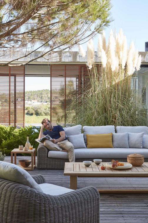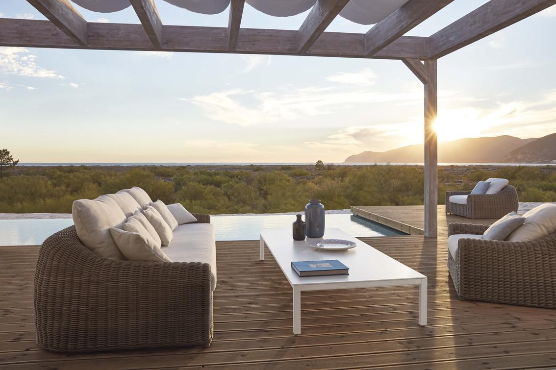 The River seating collection owes its name and inspiration to the meandering flow of a watercourse. Through its elegant curves and shapes, the sofas and sunbeds mimic natural surroundings, fostering a harmonious, relaxing space for connection. Become one with nature and experience its calming effects in this low-to-the-ground design with extra deep seating.