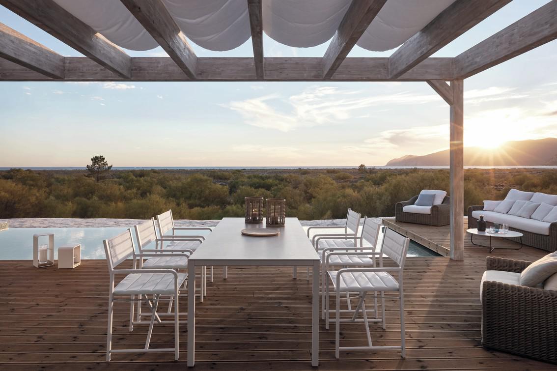 The River seating collection owes its name and inspiration to the meandering flow of a watercourse. Through its elegant curves and shapes, the sofas and sunbeds mimic natural surroundings, fostering a harmonious, relaxing space for connection. Become one with nature and experience its calming effects in this low-to-the-ground design with extra deep seating.
