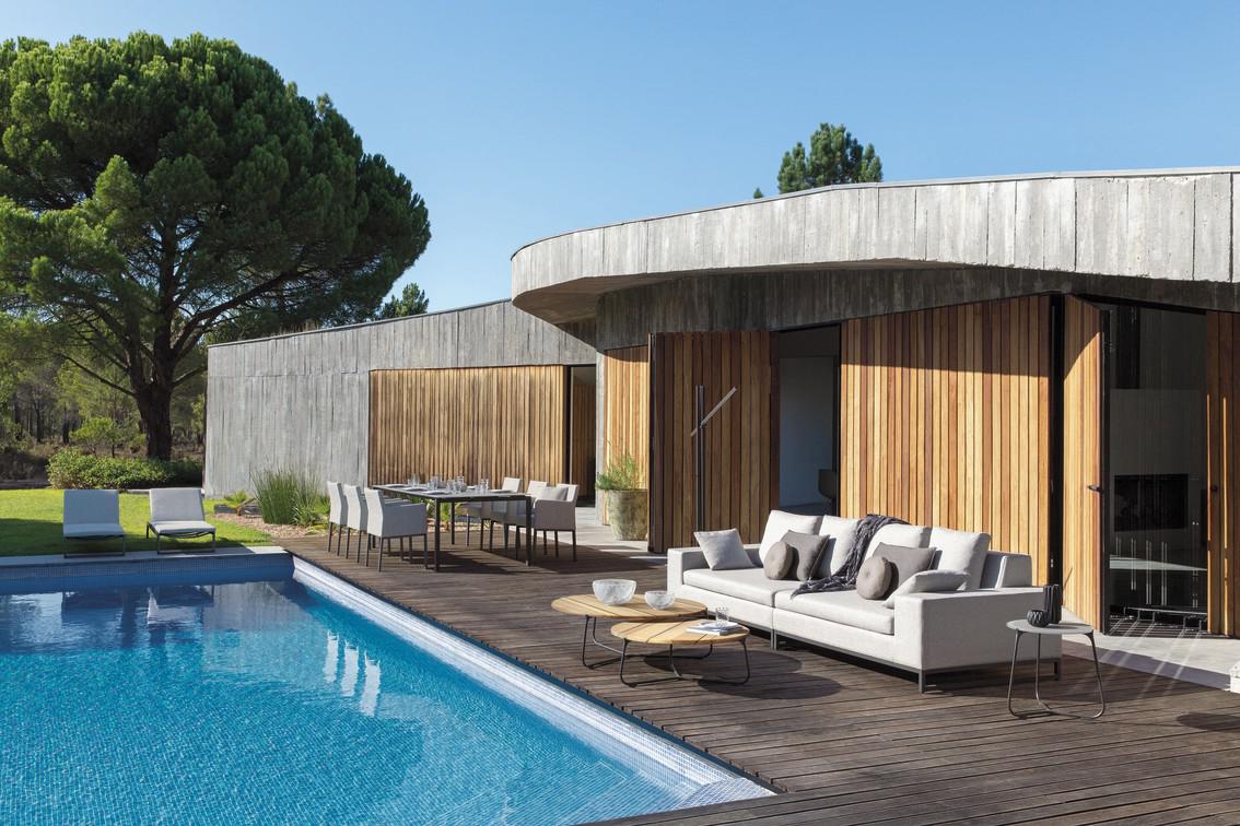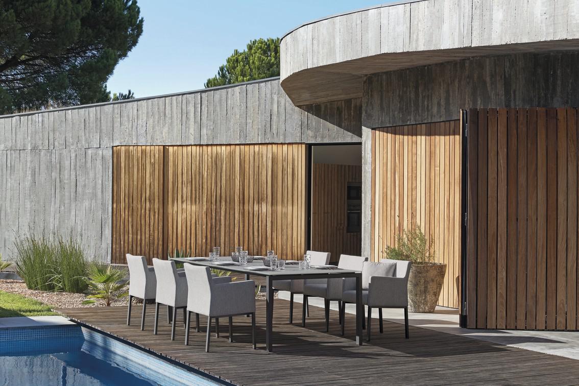 Thanks to its powder-coated aluminium frame, Liner is a winning lightweight. Whether placed on a terrace or in a lounge or spa, these highly functional chairs and loungers stand out because of their timeless design. The contemporary collection showcases the elegant muted colours of the fabrics with topstitching in matching shades. Liner pieces are available in several complementary designs.