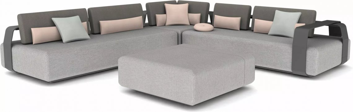 Kumo is a light and playful contemporary seating island with pouf. Japanese for cloud, Kumo invites you to create your personalised outdoor cocoon. It comes in different shapes and sizes. The movable armrests and back supports are easily adjusted to create either a comfortable sofa or stylish lounger, a luxurious lounge chair or a relaxing footrest.