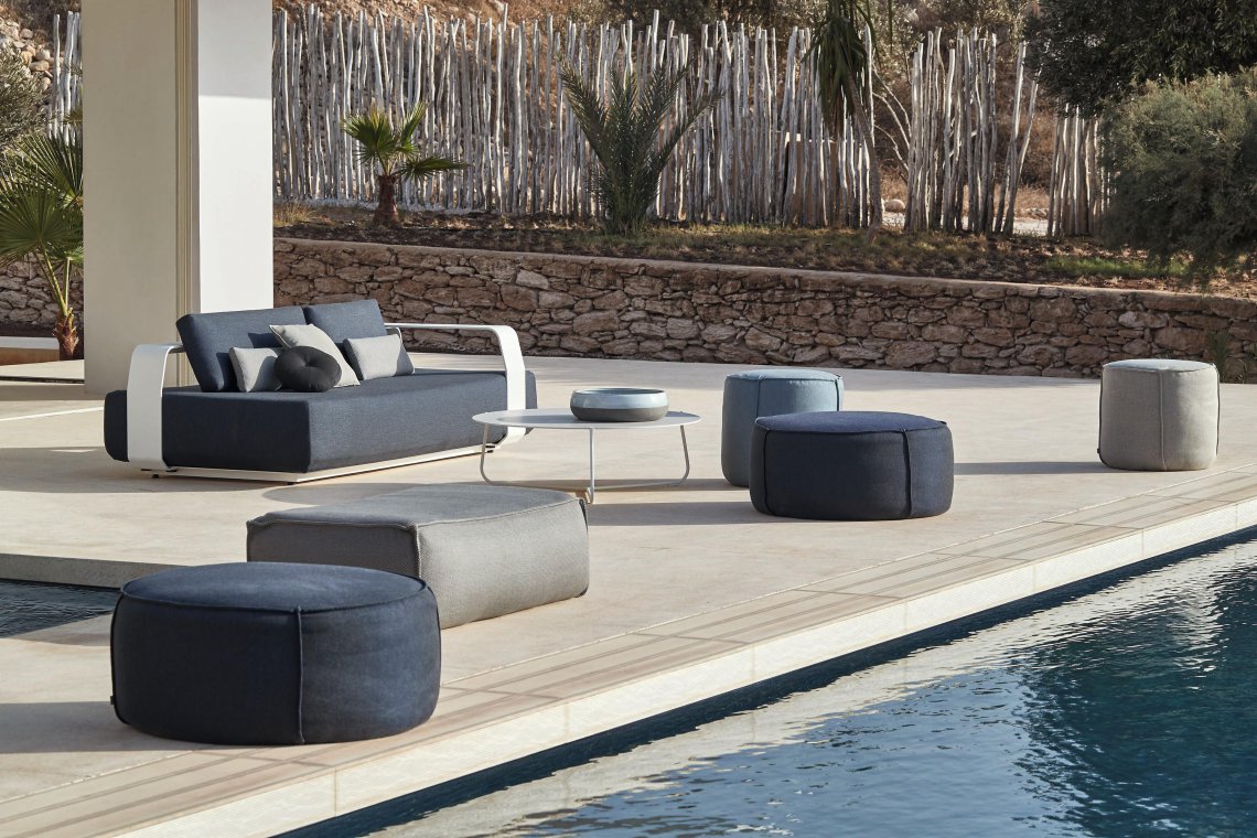 Kumo is a light and playful contemporary seating island with pouf. Japanese for cloud, Kumo invites you to create your personalised outdoor cocoon. It comes in different shapes and sizes. The movable armrests and back supports are easily adjusted to create either a comfortable sofa or stylish lounger, a luxurious lounge chair or a relaxing footrest.