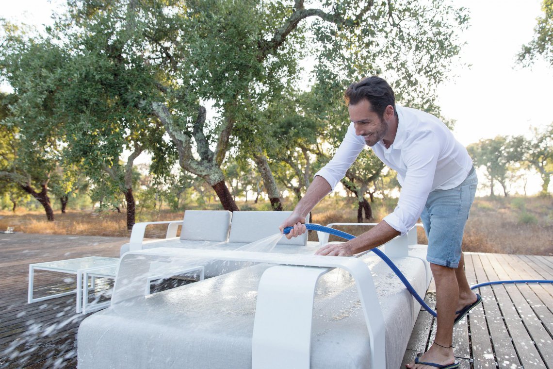 Kumo is a light and playful contemporary seating island with pouf. Japanese for cloud, Kumo invites you to create your personalised outdoor cocoon. It comes in different shapes and sizes. The movable armrests and back supports are easily adjusted to create either a comfortable sofa or stylish lounger, a luxurious lounge chair or a relaxing footrest.
