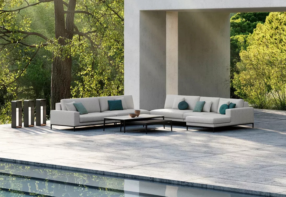 A sleek frame, sophisticated upholstery fabrics, exceptional seating comfort and endless combination possibilities are only a few features of Zendo Sense, a new take on a timeless Manutti icon. Carefully selected materials are crafted into durable, weatherproof pieces that emanate luxury and show no distinction between interior and exterior design. Offering modular and freestanding sofas, club sofas, daybeds and coffee tables, the versatility of Zendo Sense makes it the perfect fit for settings of all shapes and sizes : from int