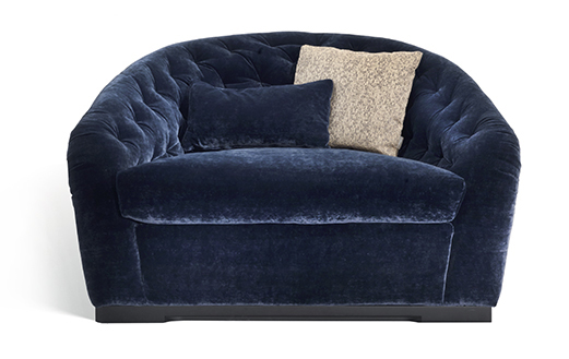 Poltrona imbottita con rivestimento in tessuto o pelle.