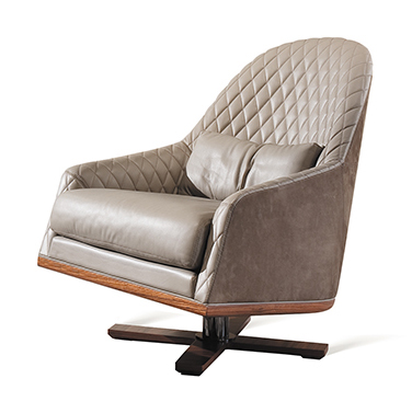 Poltrona con struttura in legno. Rivestimento in tessuto o pelle.