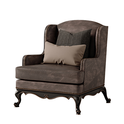 Armchair. Solid wood structure completely padded. Base with solid wood sculptures in ebony-coloured polishing.