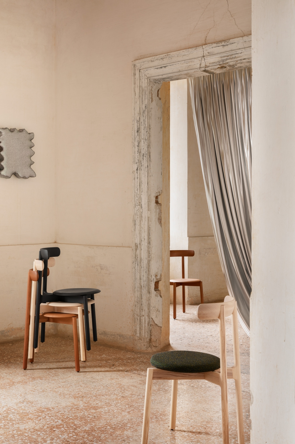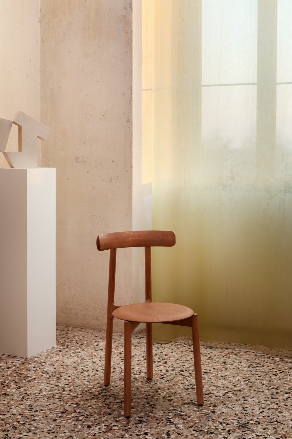 Bice è una sedia snella e a tratti insolita. Nel suo design essenziale spicca uno schienale a sventola, eccesso capace di equilibrare e caratterizzare la sua struttura.