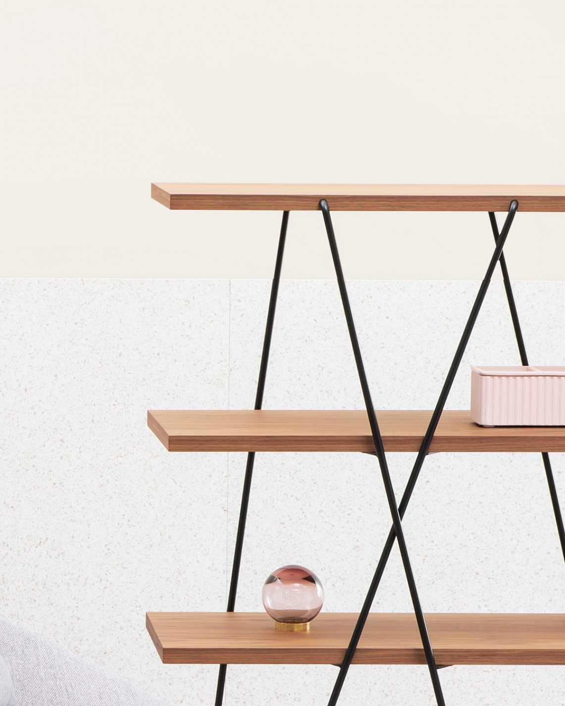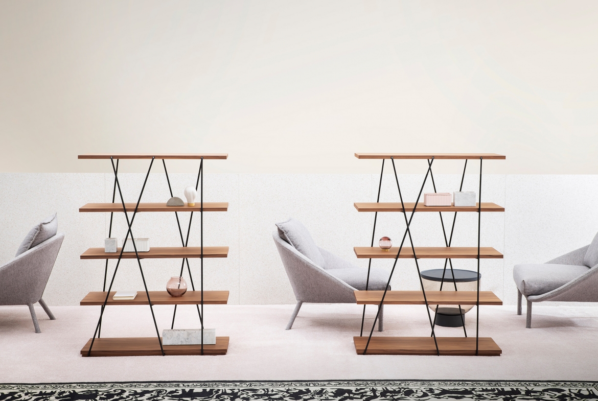 Like the yarn from a ball, the fine lines of the bookcase neatly wrap around the shelves. And so Matassa becomes a curious addition with a pleasing balance.