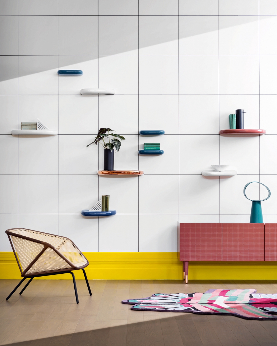 Do you remember as kids when you used to try to skim stones on the water? Well Pinna is a collection of three shelves in organic shapes, which could very easily bounce on water, but they would definitely look better on the walls at home. They are made of thick, glossy ceramic. But please don't throw them.