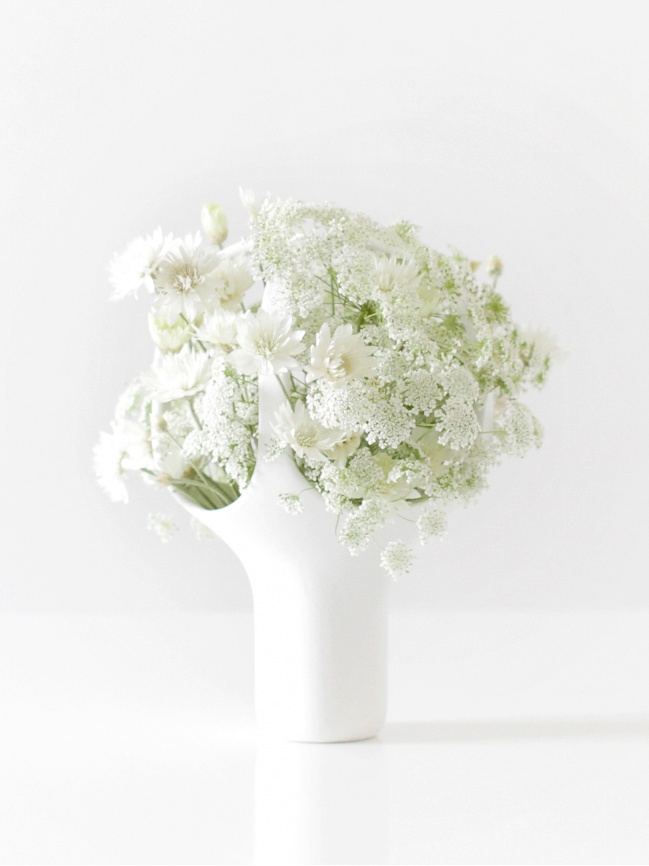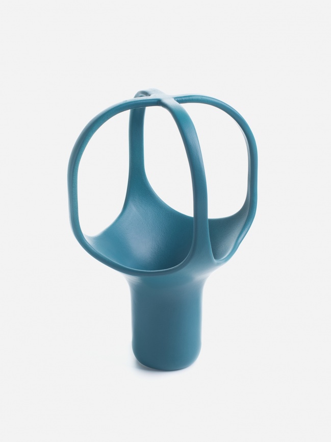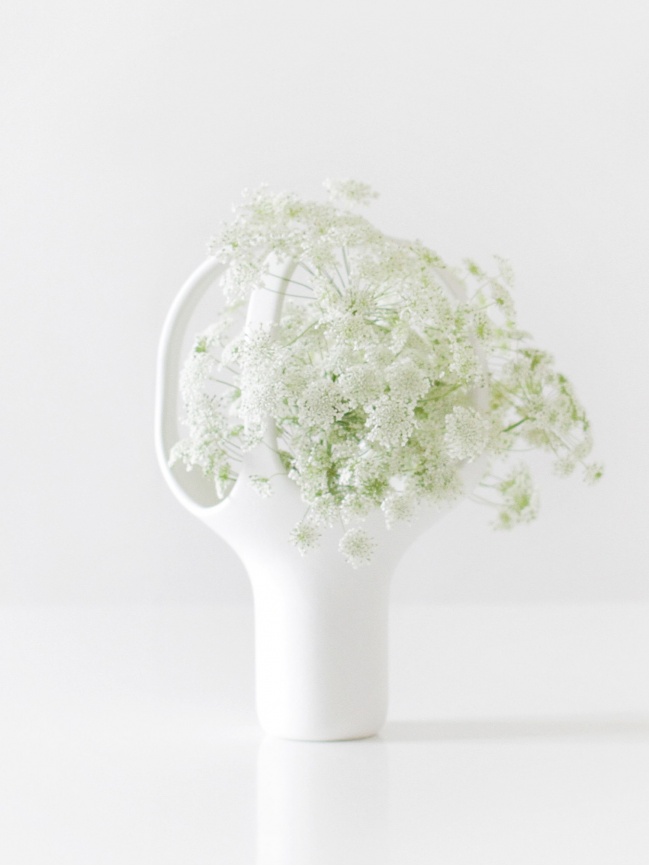 The Heirloom collection is a serie of vases with tops that loop over the flowers to frame them. The Heirloom vases are made of ceramic in three designs: a small version with one half enclosed like a hood and two larger ones with four or eight ribs
