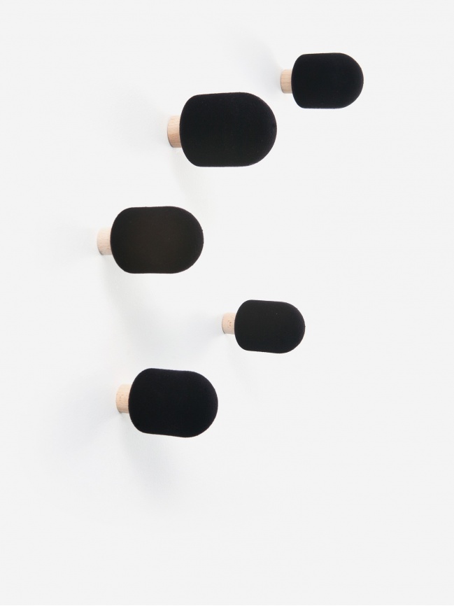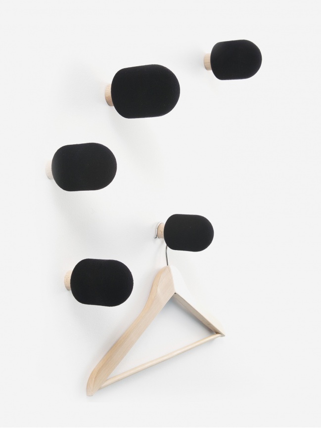 Referring to the journalists and singer's microphone, the oak and colored foam pegs Micro are directly fixed to the wall so that you can softly hang your clothes on it.