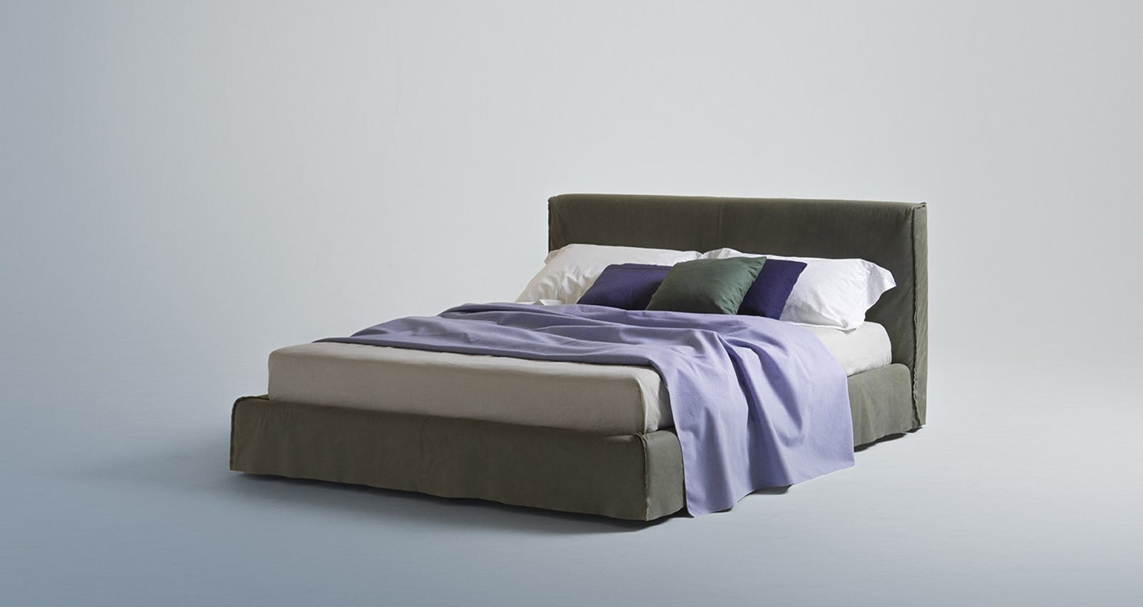 A fresh bed, with its cover designed like tailored clothing: felled stitching highlights even the smallest fold in the cover, which fits the bed like a dress. Warm in winter, cool in summer, just a simple action a quick “change of clothes”, giving a different look to the bedroom.
