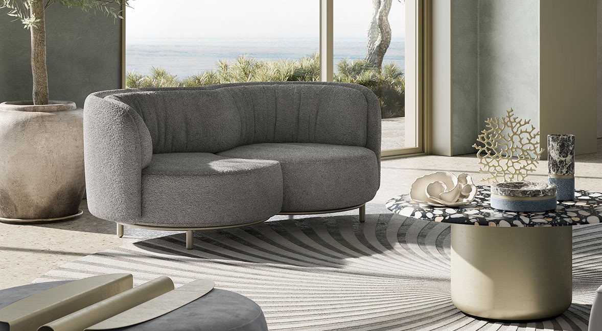 繭形Wave沙發(fā)是該系列的主要產(chǎn)品之一,其形似波濤,靠背和坐墊的包線創(chuàng)造出一個誘人的私密空間。此外,兩個半月形組件組成的腳凳中心可由一個典雅的淡金色金屬雜志架配件連接在一起。