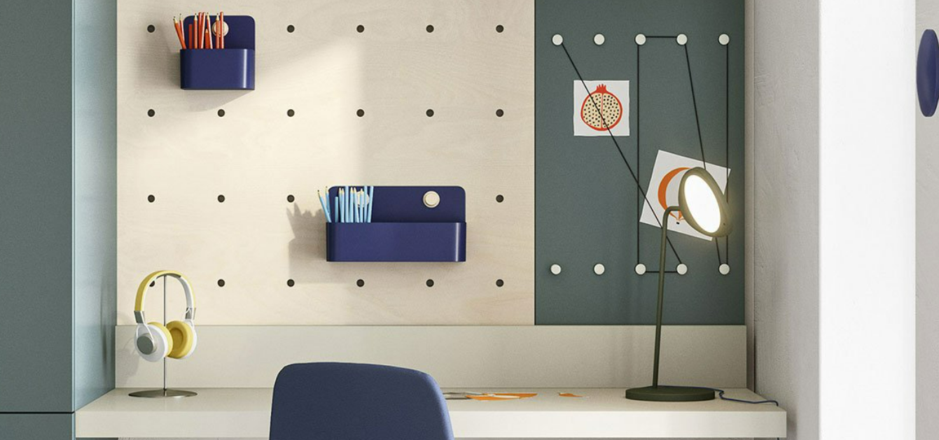 Il piano dello scrittoio si può combinare con fianchi dritti o a L, che sono disponibili in tutti i colori di Nidi!