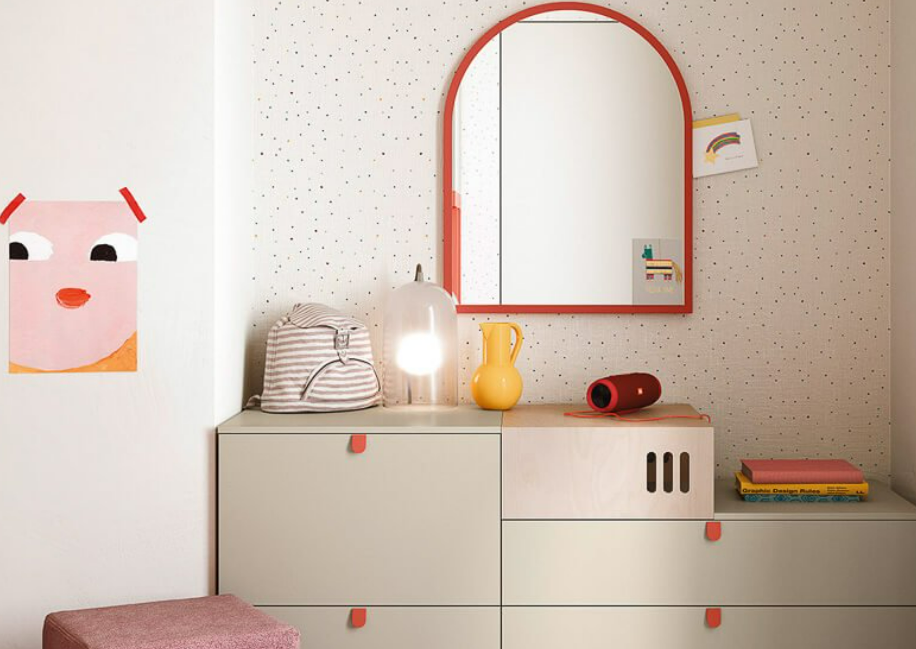 Sospeso o a terra, il comodino Base può avere uno, due, tre cassetti o un cassettone. E c’è anche nella versione con anta Soft imbottita!