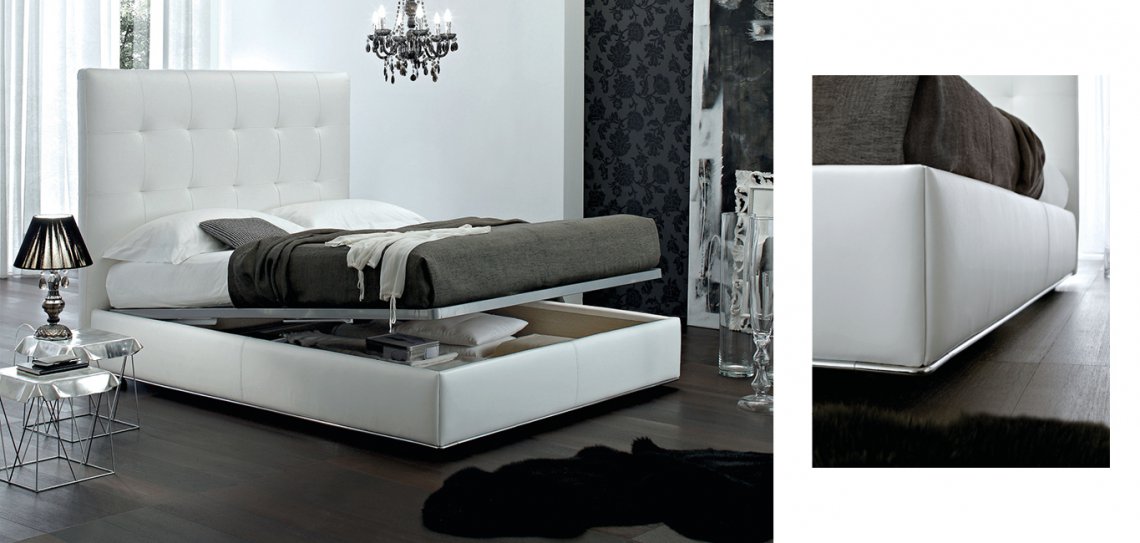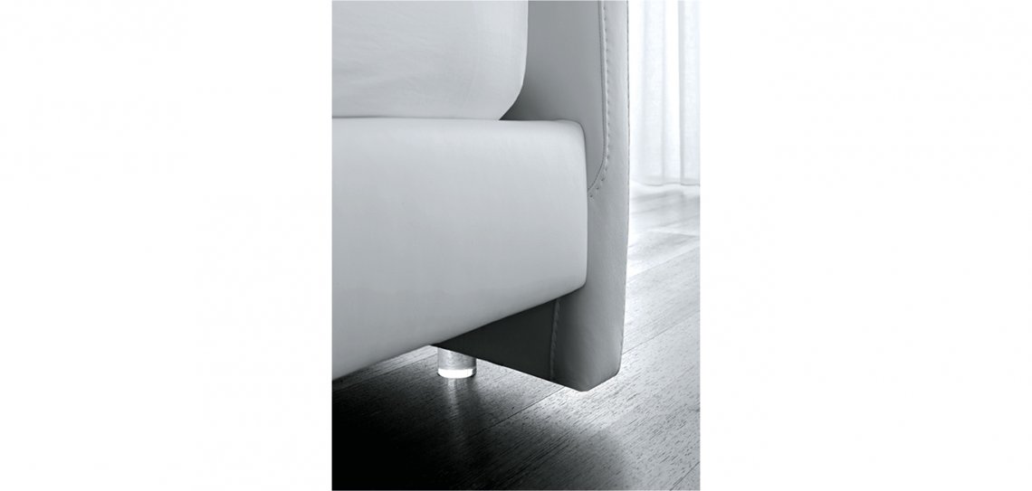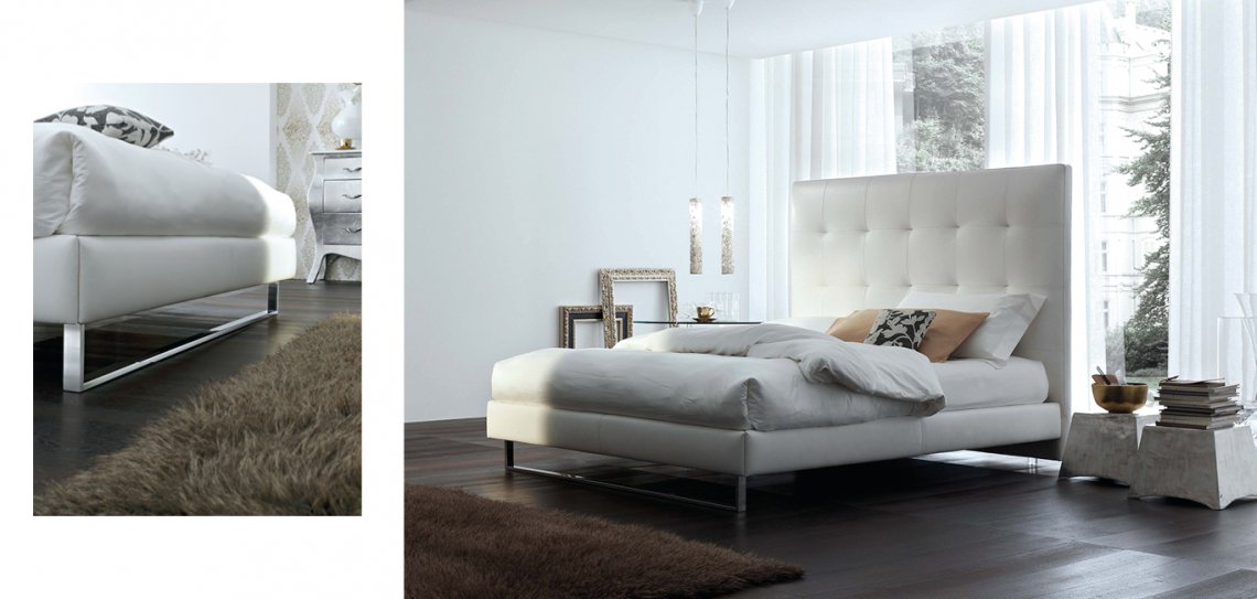 Elite, un letto da sogno: lo si capisce al primo sguardo, colpiti dall’imponente testiera trapuntata e dall’attento studio dei dettagli, come la base anteriore in metallo lucido e il piede posteriore in plexiglass.
