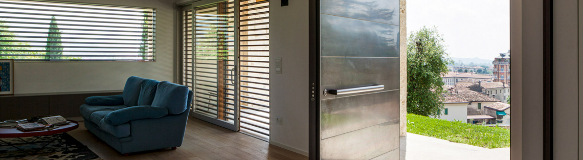 La porta blindata per le grandi dimensioni con funzionamento a bilico verticale e complanare al muro.Synua è la porta blindata che non conosce limiti: ideale per le grandi dimensioni, è il connubio perfetto tra tecnica e design. Dotata di apertura a bilico e complanare al muro, è rivestita da settori o a pannello unico o a disegno del cliente e può raggiungere i 3000 mm di larghezza e i 6200 mm di altezza standard. A richiesta può essere realizzata con dimensioni maggiori.