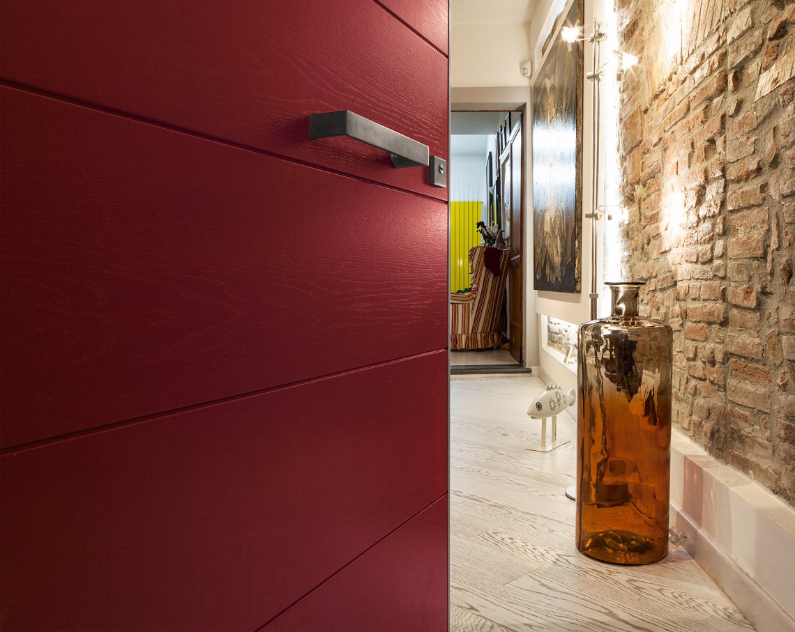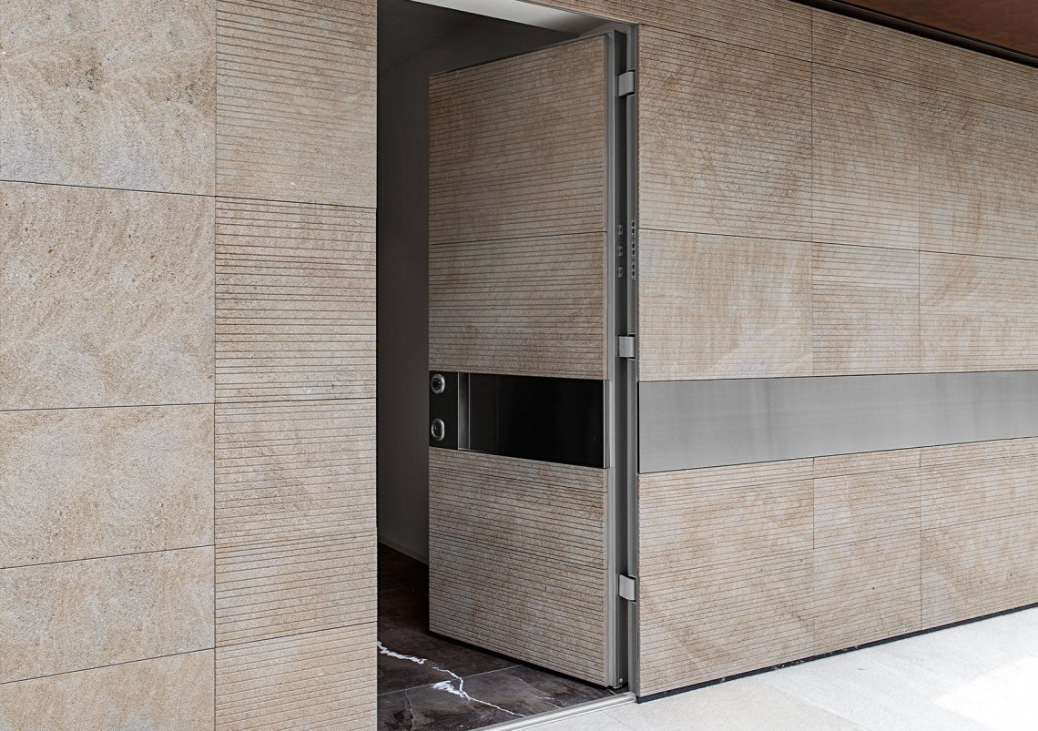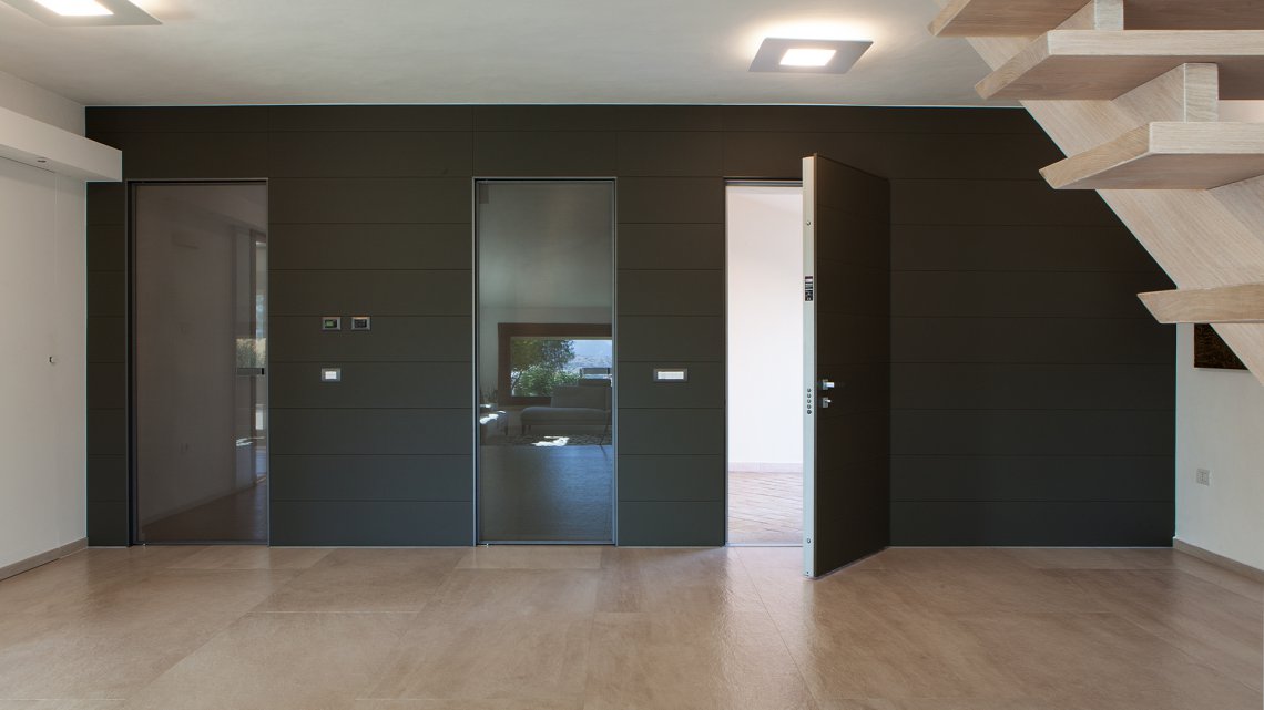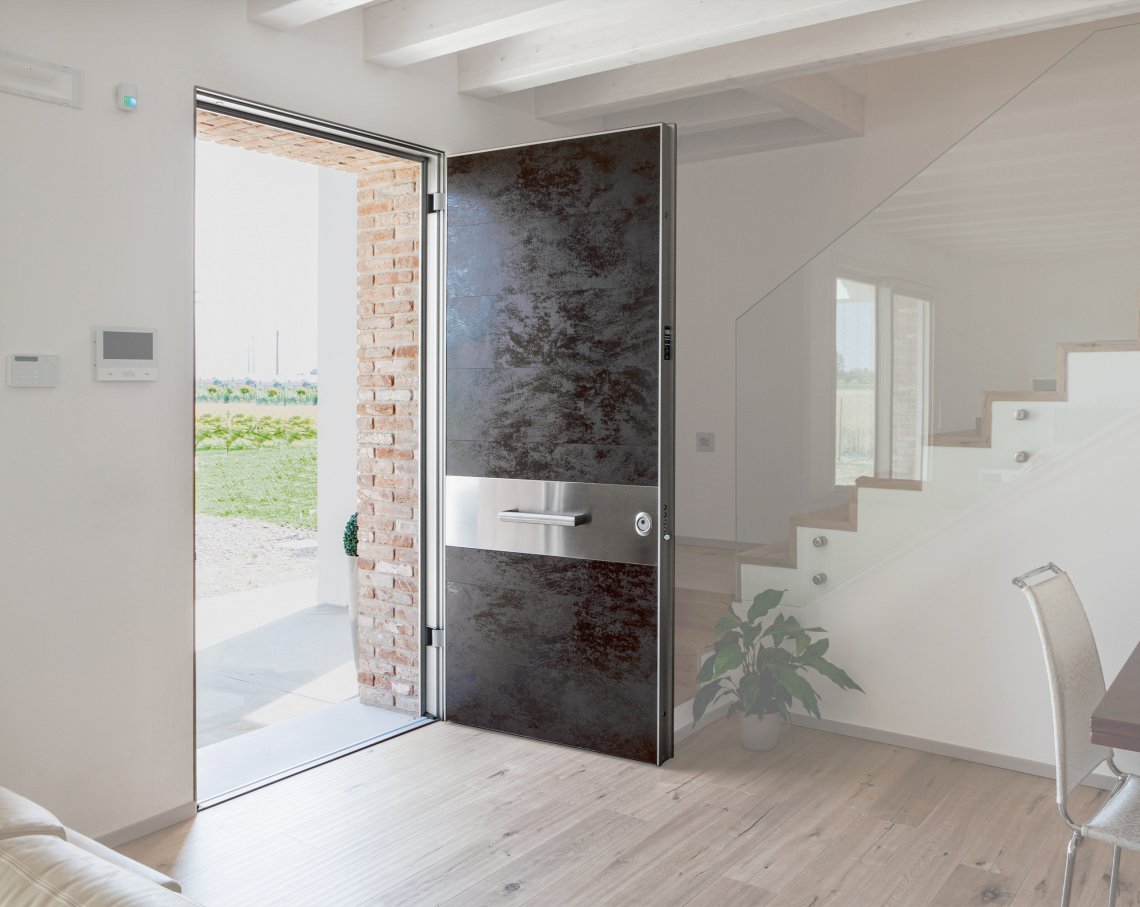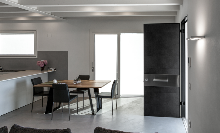 Porta blindata con cerniere a scomparsa.Un concentrato di innovazione e tecnologia. Tekno è la porta blindata con cerniere a scomparsa caratterizzata da performance di alta gamma e resistenza al fuoco EI 90 o EI120. Possibilità di installazione rasomuro interno, rasomuro esterno, rasomuro con cartongesso, complanare interno con cornice.