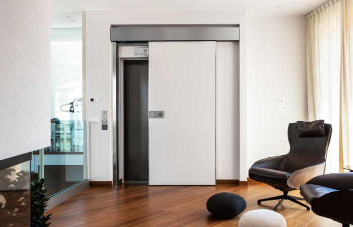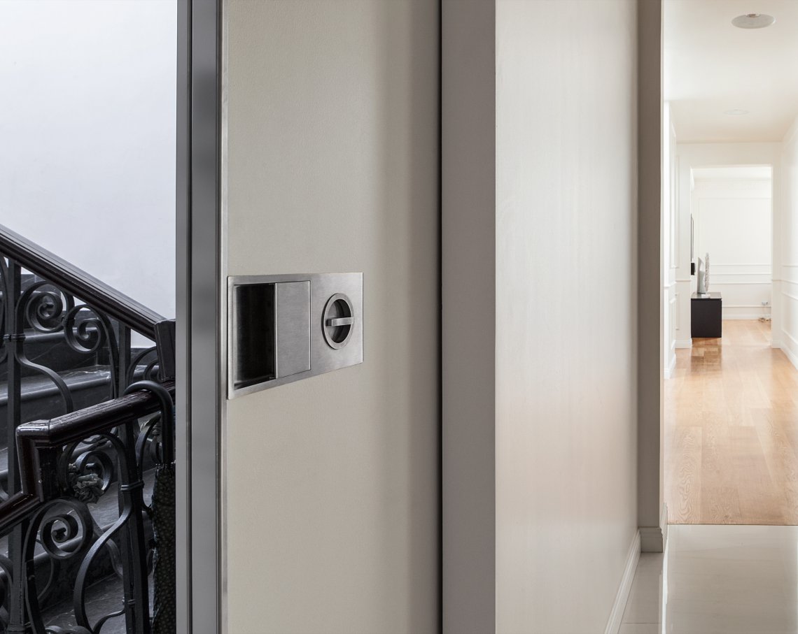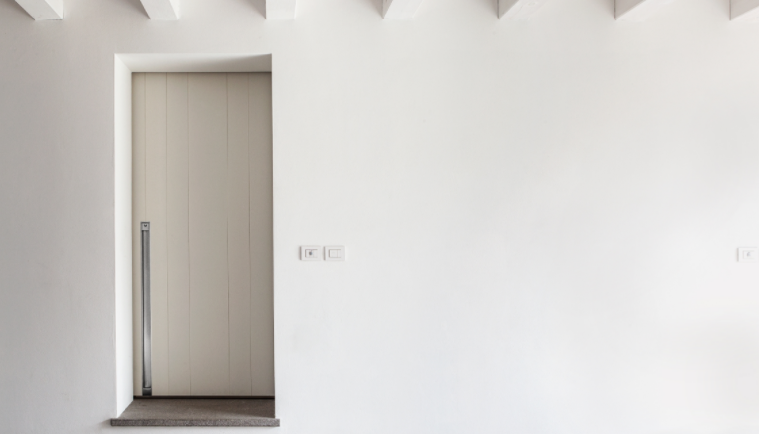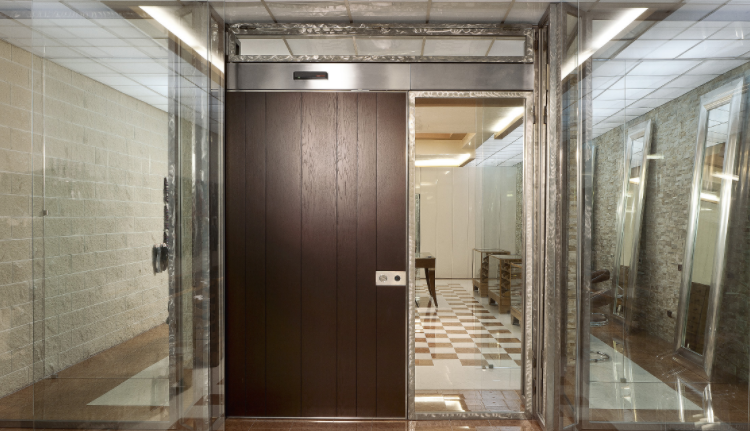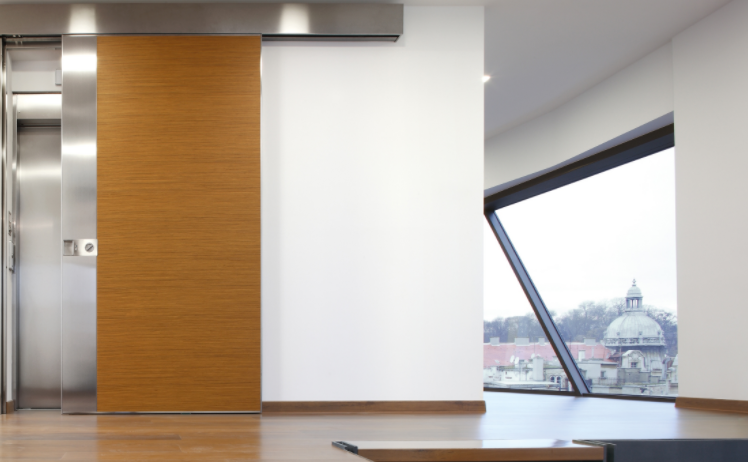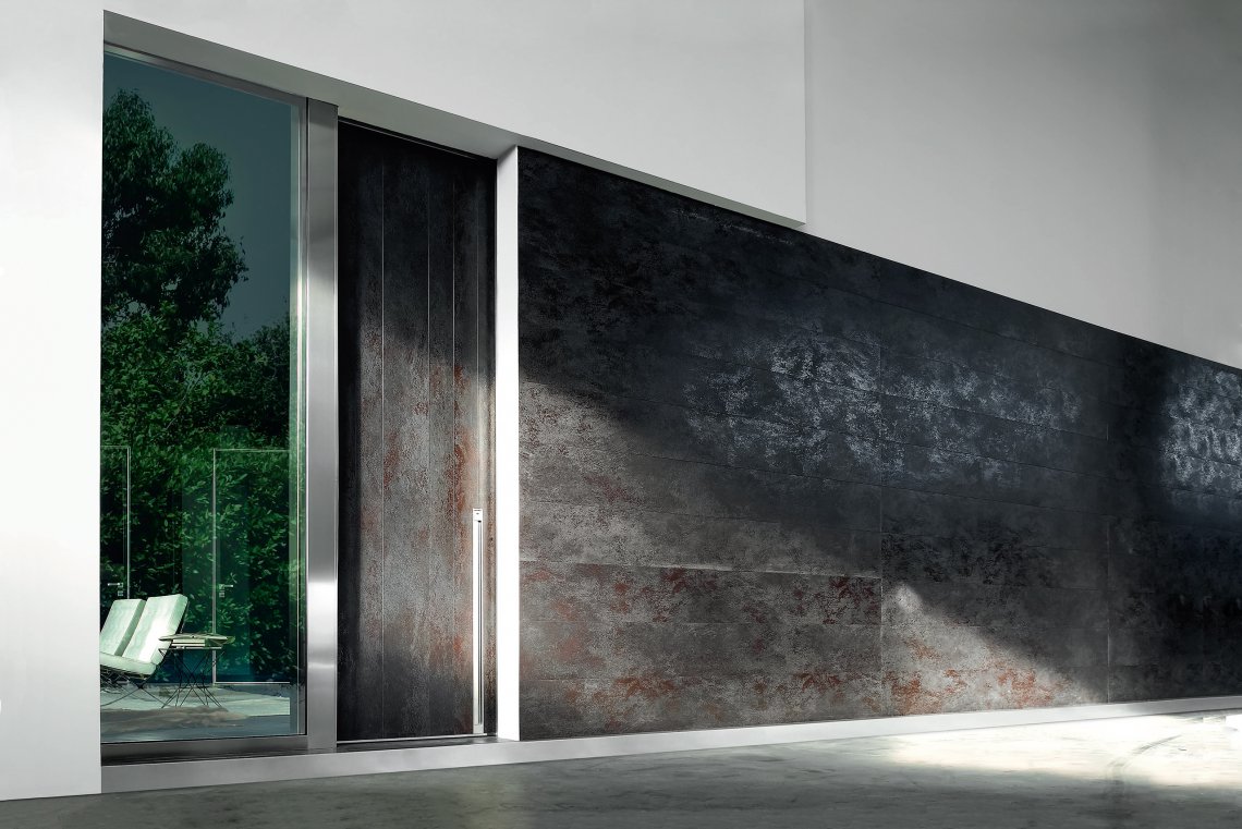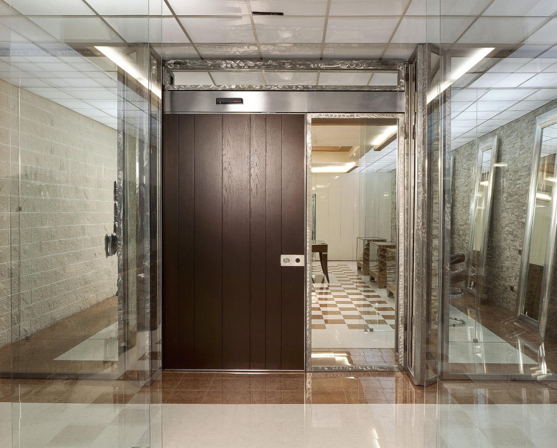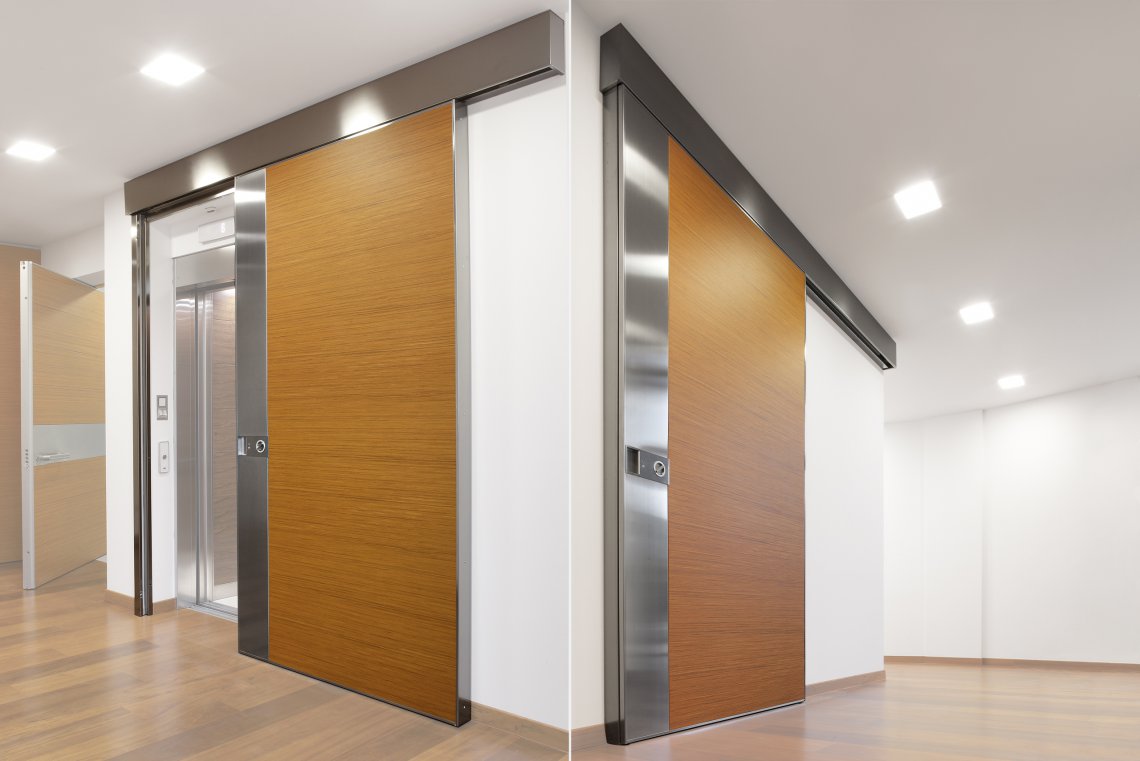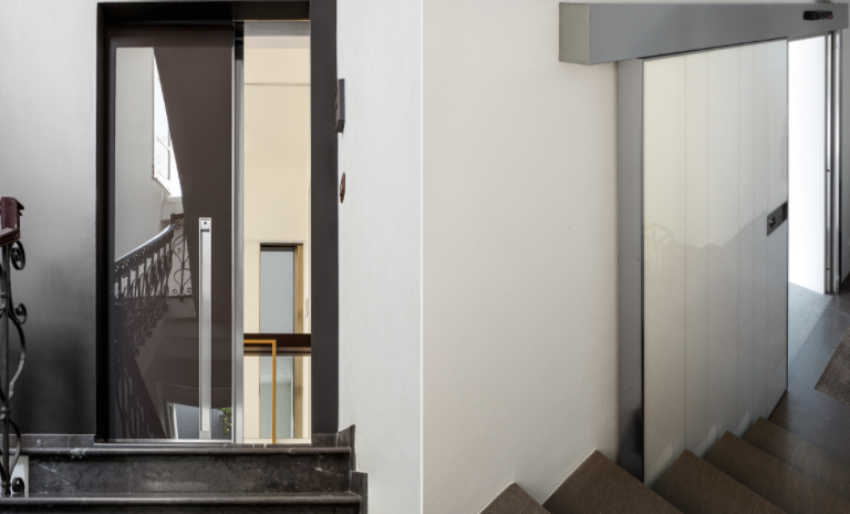Porta blindata scorrevole.Apertura scorrevole come segno architettonico in movimento.