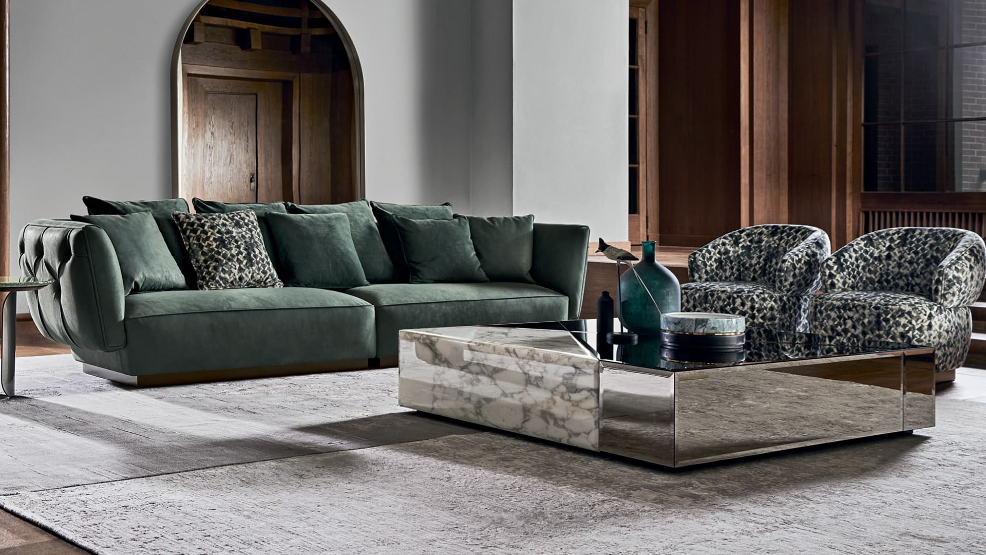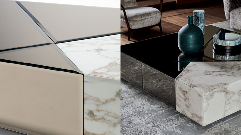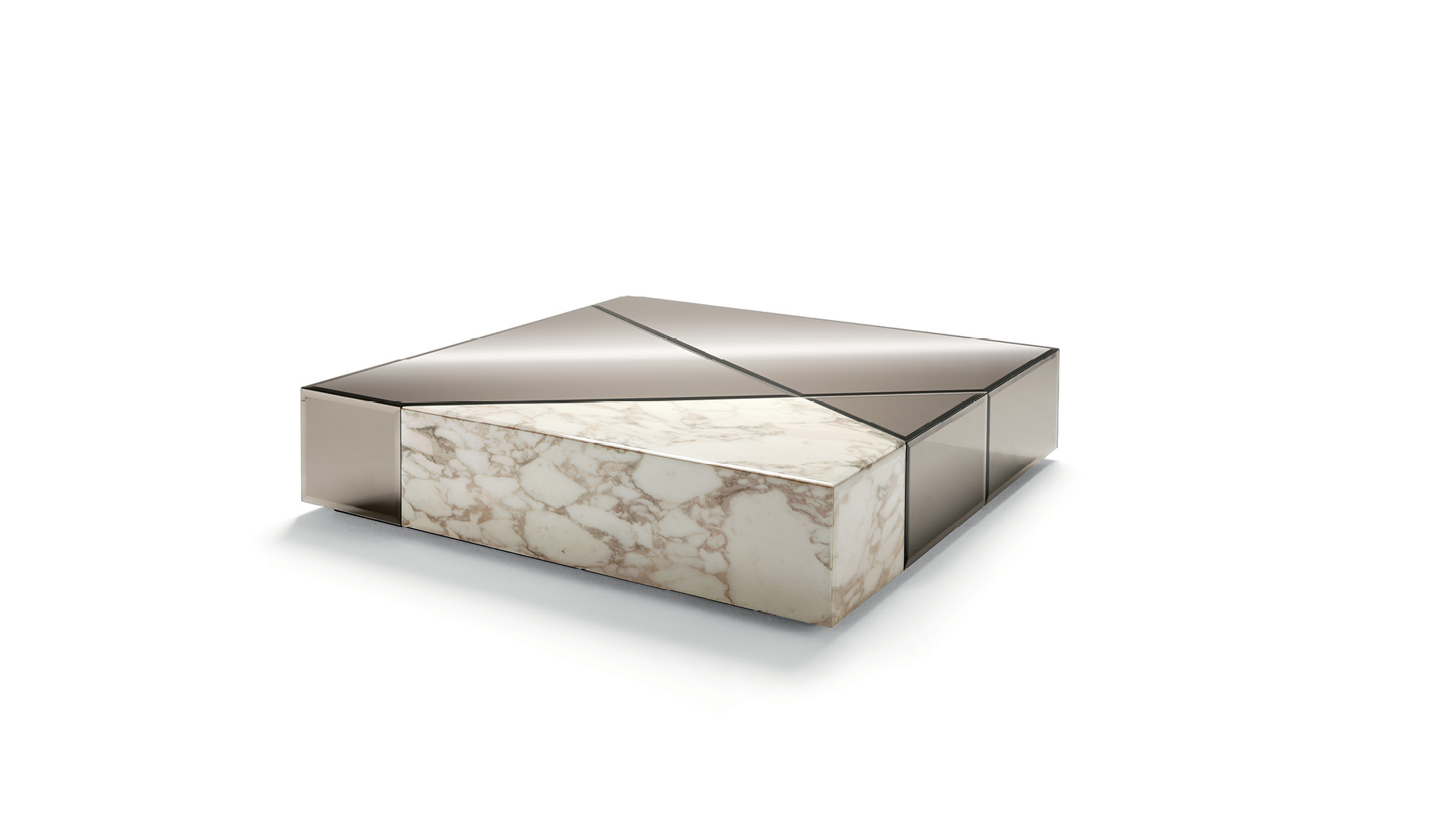 Il tavolino in marmo e specchio Cyrano è un gioco di linee geometriche e vivaci combinazioni. Alla base, una sorprendente alternanza tra pregiati materiali è pensata per illuminare lo spazio con i suoi tratti essenziali.