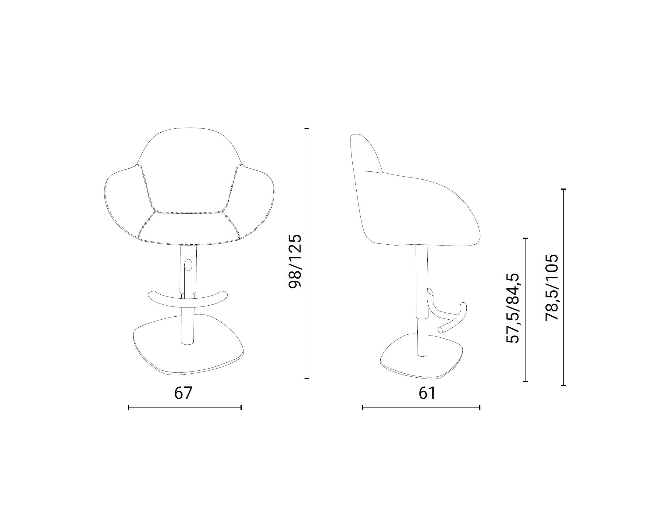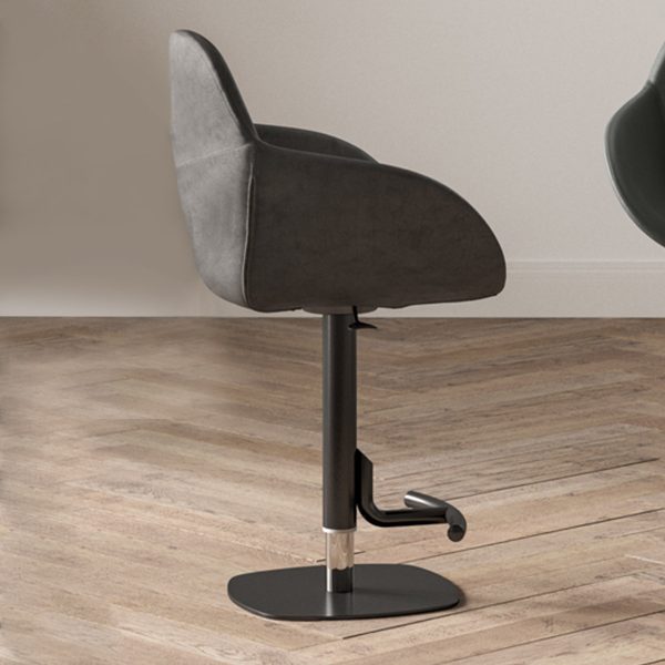 Sgabello con alzata a gas in metallo e seduta rivestita in pelle, eco pelle nabuk o velvet.