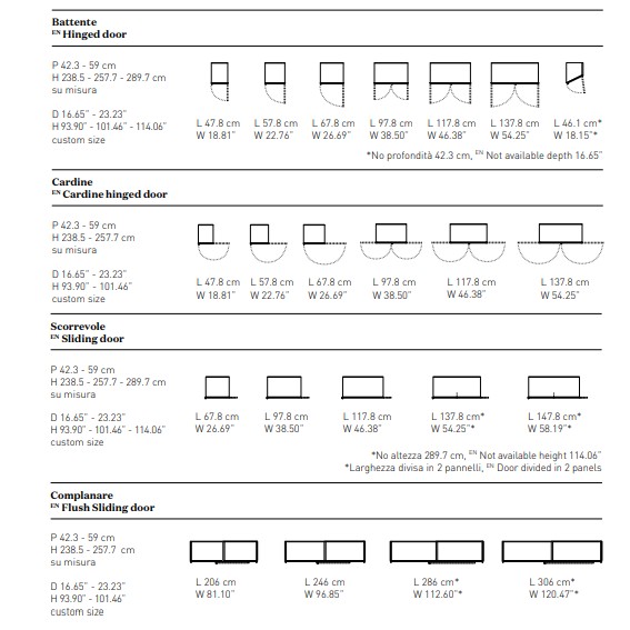Like a treasure chest, the Amalfi wardrobe opens up to reveal its inner secrets. Not just clothes and shelves, but a home office niche for an unexpected, intimate workspace solution. The Ala desk with drawers, the shelves and open modules create a functional, compact workspace, discreetly stowed away behind doors that conceal forms and functions. Clever little details of cabinet-making brilliance, smart use of hidden lighting and integration of the most modern solutions for office space, make Amalfi the perfect aid for interpreting the fluidity of life right now, rather than a hybrid of different genres. Full length door handles, coordinated or contrasting with the door, enhance the linear geometric wardrobe design. Besides the classic opening styles, Amalfi is available with a special hinge for 180° door opening, recalling the hinges on doors and fine furniture in past times.