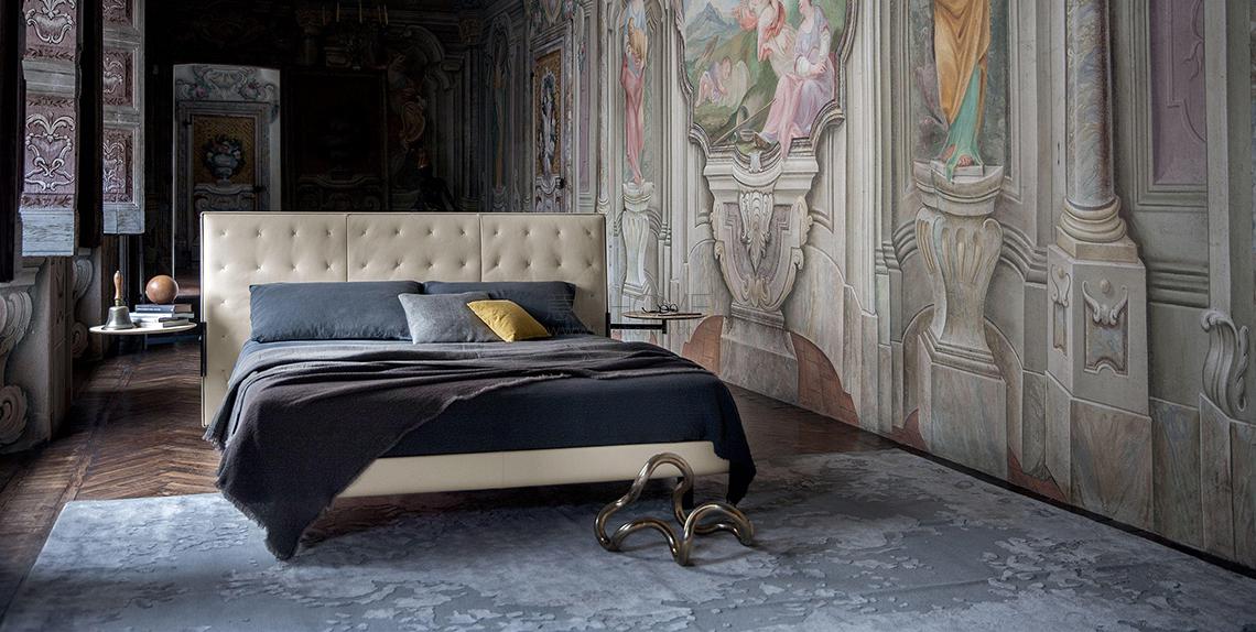 Jack床由Jean-Marie Massaud設(shè)計,其氣場和特性能夠定義環(huán)境。超大且方正的床頭,飾以輕盈細(xì)膩的手工縫制X圖案,展現(xiàn)Poltrona Frau歷史悠久的手工藝技能。Jack可以在床頭兩側(cè)添加兩個置物平臺,與床包覆相同材料。