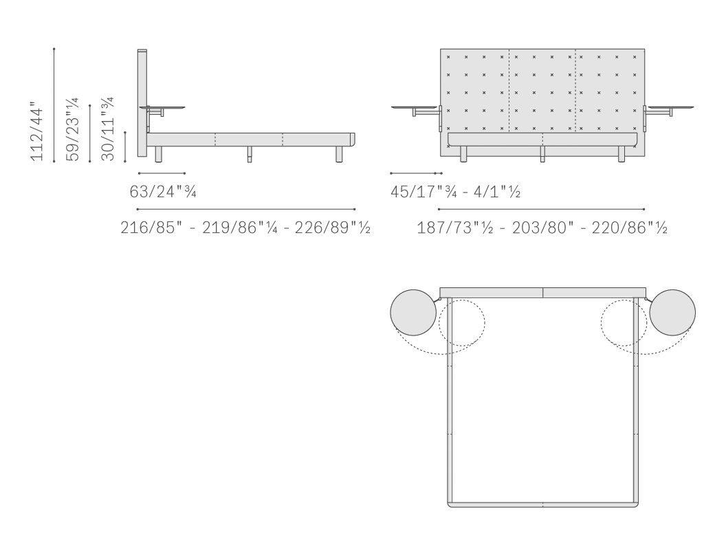 Jack床的床頭結(jié)構(gòu)為樺木膠合板和中密度木質(zhì)纖維,松軟填充聚氨酯泡沫和聚酯棉?;鶠闂钅灸z合板,略微填充。圓柱形支腳使用黑色啞光噴漆鋁。置物平臺由包覆Pelle Frau?軟皮的圓形表面和槍管色表面處理金屬臂構(gòu)成,后者用于連接。覆蓋Pelle Frau?軟皮。Jack床可以搭配豐富的Poltrona Frau Notte?系列床面、床墊和床上用品組合。