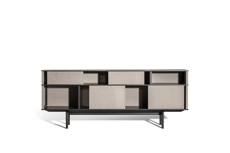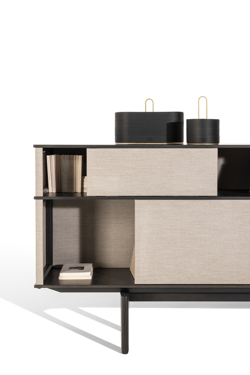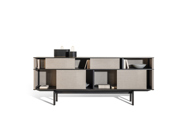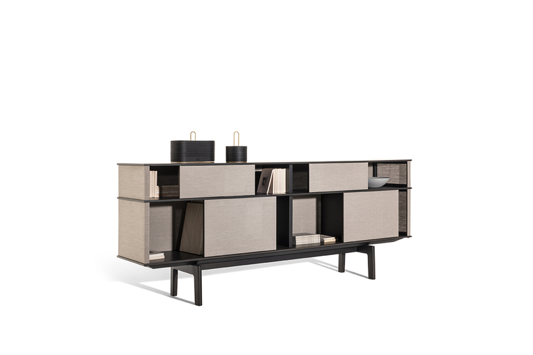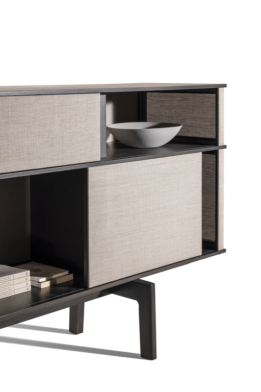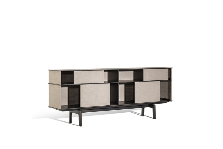 In Lloyd Tex, the most advanced technology comes together with traditional materials such as wood, in a delicate balance between different spirits of material. And the interplay of solids and voids becomes even more evident, allowing a glimpse of the content of the freestanding bookcase, without completely revealing it.