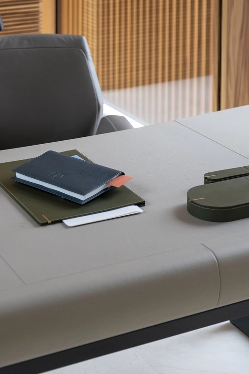 Objects to place on the table for an environment with attention to every detail. In celebration of Poltrona Frau's 110th anniversary, a special notebook has been created, in a 17x24 cm format and with a cover clad in the innovative Pelle Frau Impact Less: the most sustainable leather in the catalogue, because it is tanned without the use of chrome and with significantly less water and fewer chemical components.