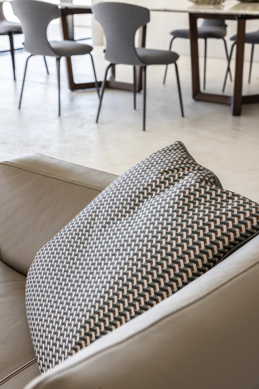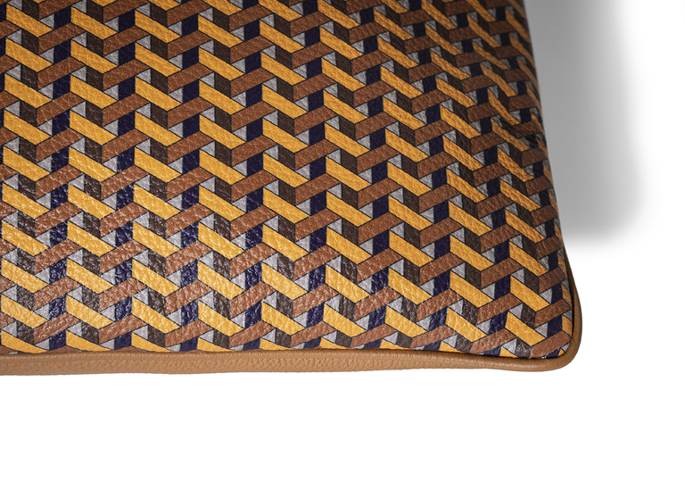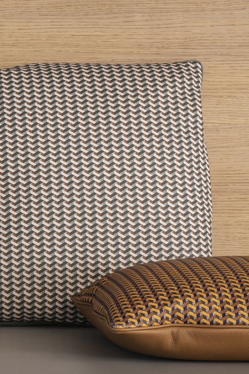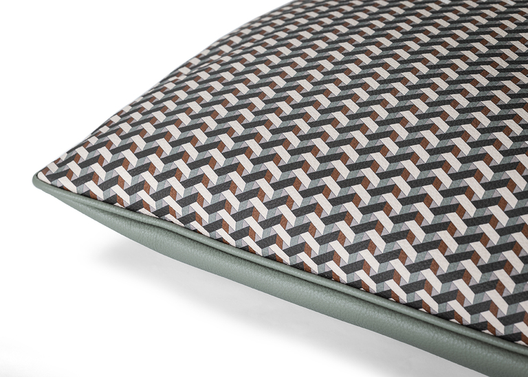 Poltrona Frau offers a wide range of decorative cushions for interior spaces. An addition to the refined fabrics in linen, silk and velvet and the wide range of upholstery in Pelle Frau leather is the Pelle Frau Motif Weavers, a decoration in digitally printed multicoloured leather that recalls the world of weaving, wicker and basketry. There are two colour variants available, Sage and Cinnamon. Both colours can be matched with Pelle Frau ColorSphere leather, the colour alphabet that allows Poltrona Frau to harmonise its furnishing accessories across the brand through colours and materials.