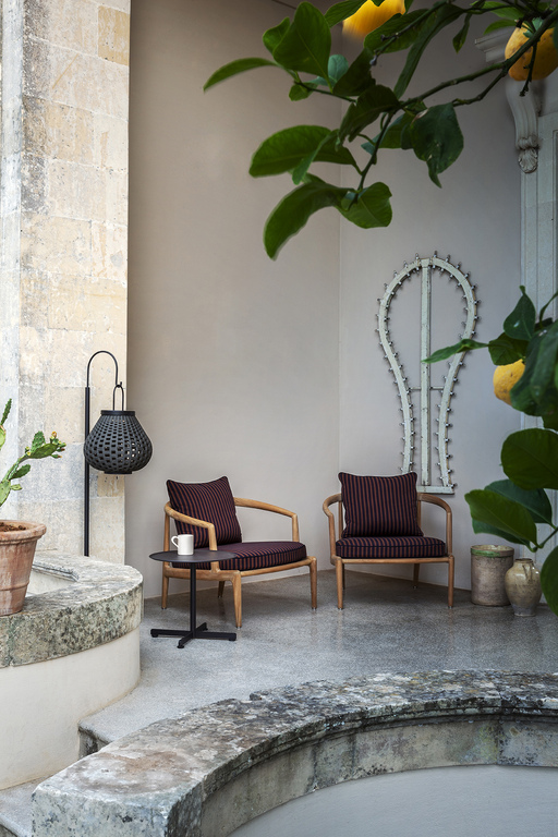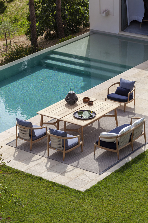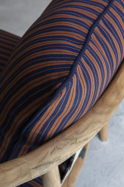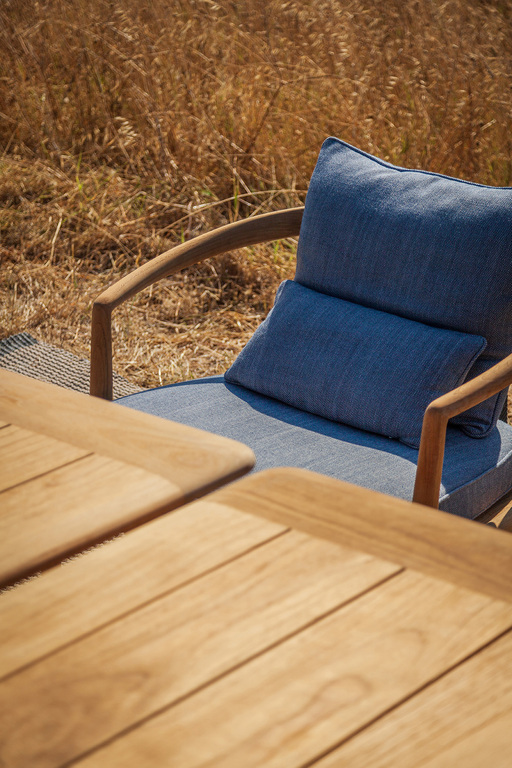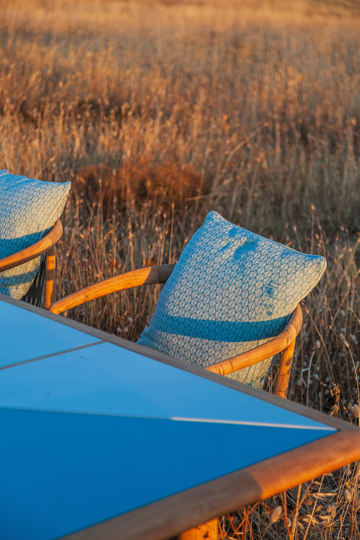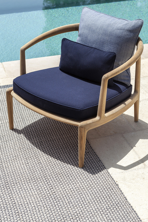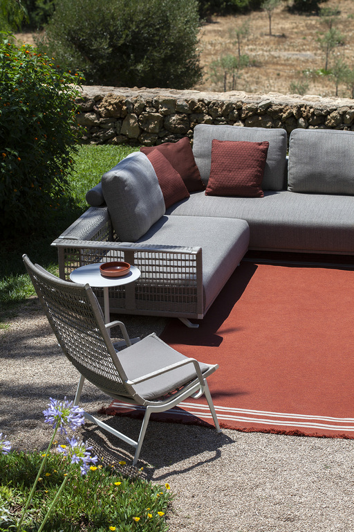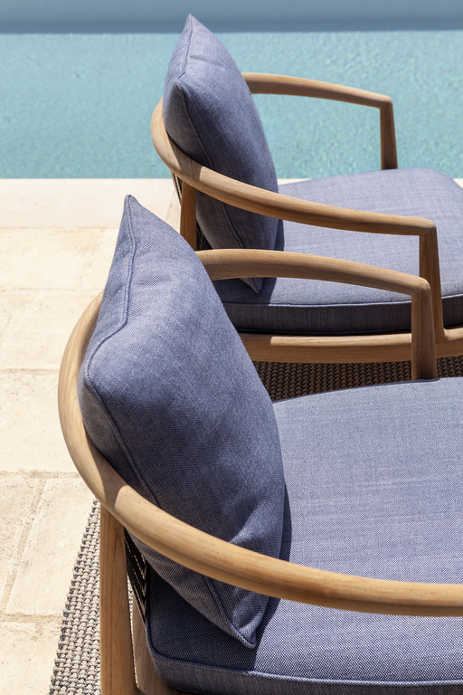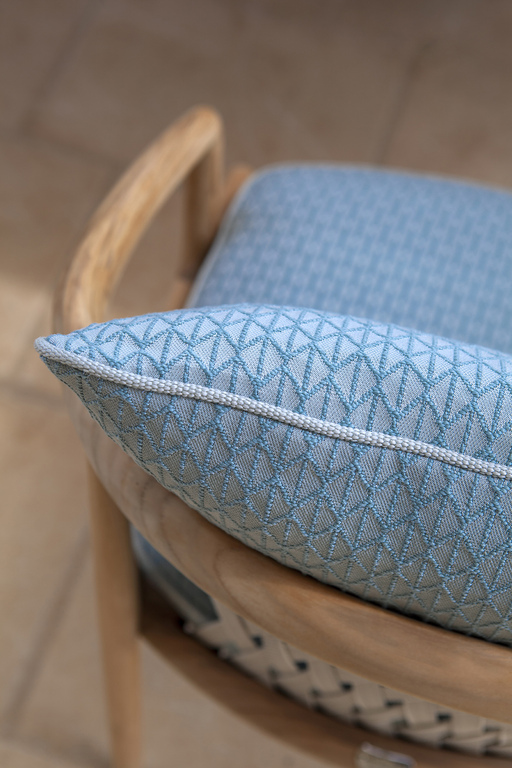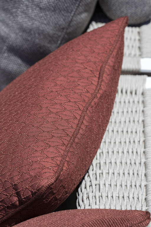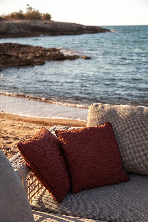 The line of decorative cushions for outdoor use adds a touch of decorative flair and stylishly transforms the entire space. They can be used to complement all the seating in Poltrona Frau's Boundless Living Outdoor Collections, from outdoor armchairs and small armchairs to sofas. The decorative garden cushions are available in three sizes, square and rectangular (54x47cm, 47x47cm, 46x22cm). They are made with removable fabric covers in bright colours that match the border piping. Made with acrylic or polypropylene yarns in seven variants, two developed exclusively with Loro Piana Interiors, the outdoor fabrics reveal an unusual texture and softness to the touch as well as highly original patterns for outdoor furnishings. They are available in four colour families, inspired by the typical colours of the Mediterranean sea and vegetation.