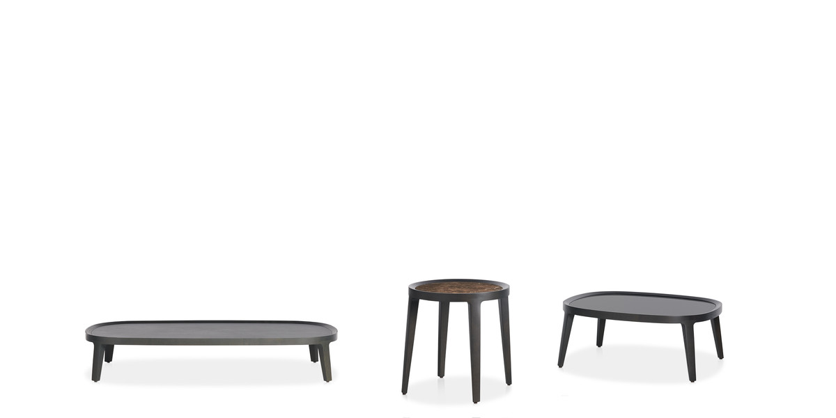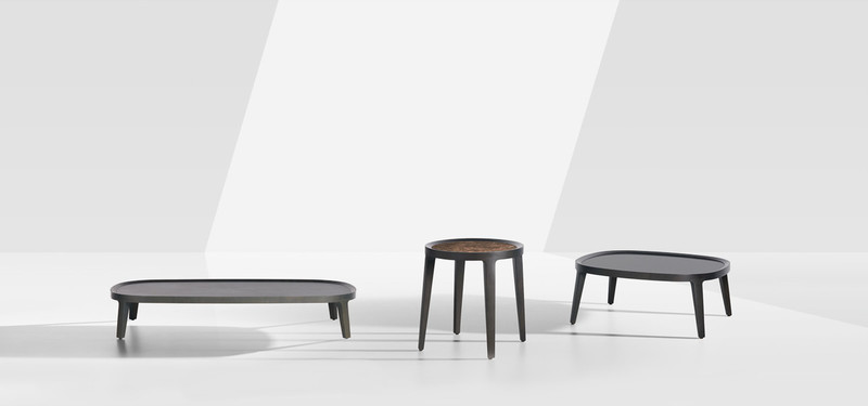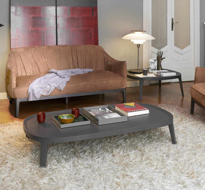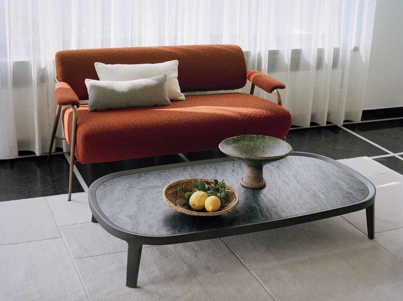 The coffee tables, available in three sizes and shapes, have a solid ash wood structure and top in three versions: ?ash, marble or or tempered back-painted glass with wooden frame.?