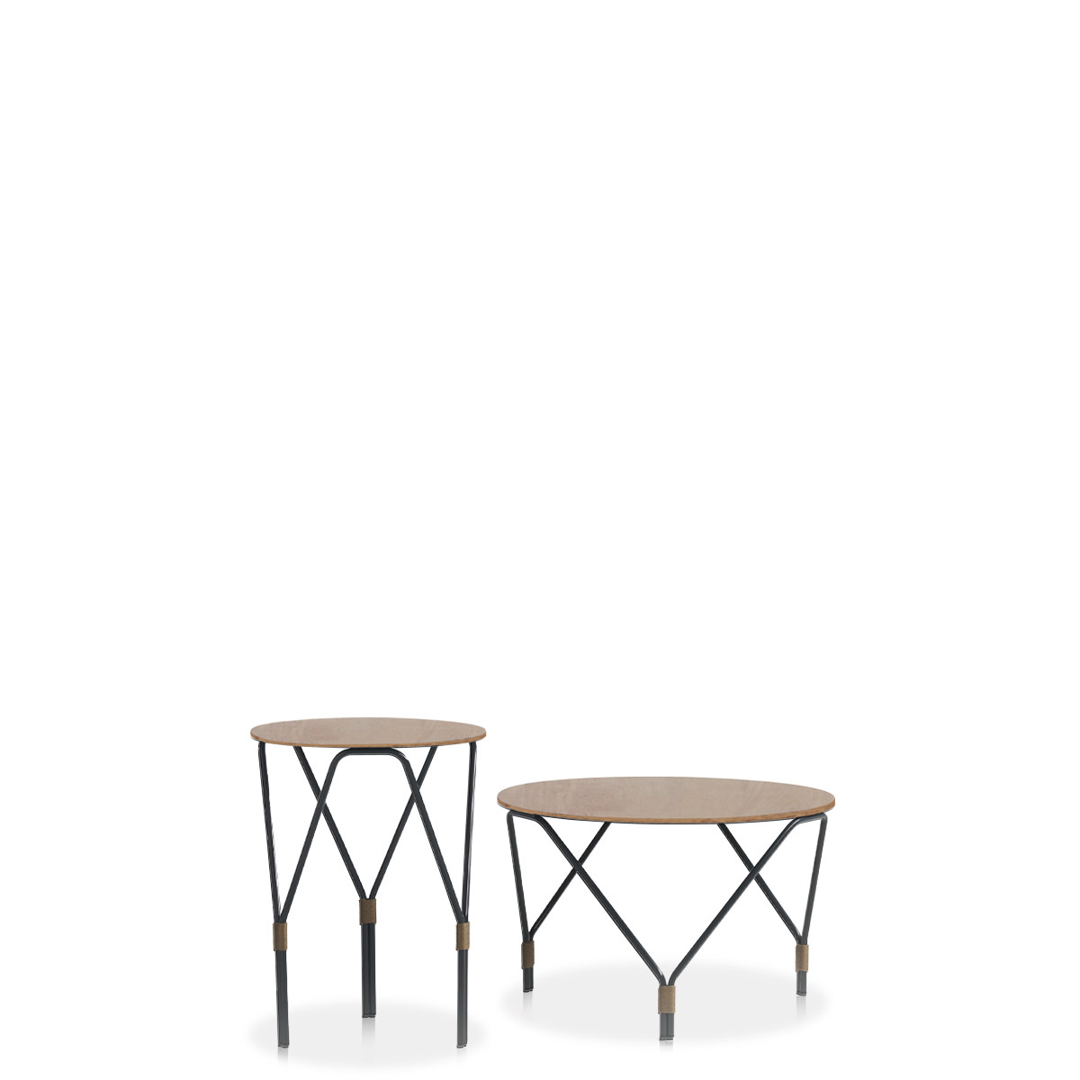 Weld is a family of coffee tables available in two heights and sizes composed of a painted metal base and nautical or “Gassa” rope details with a round top in HPL, laminated porcelain or solid Iroko wood.