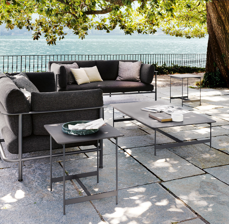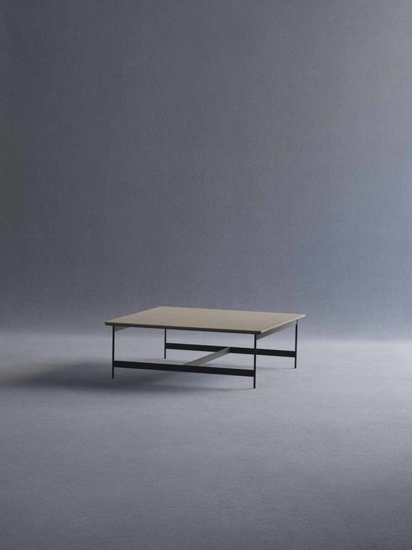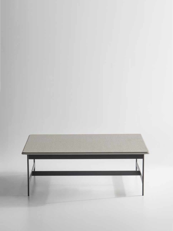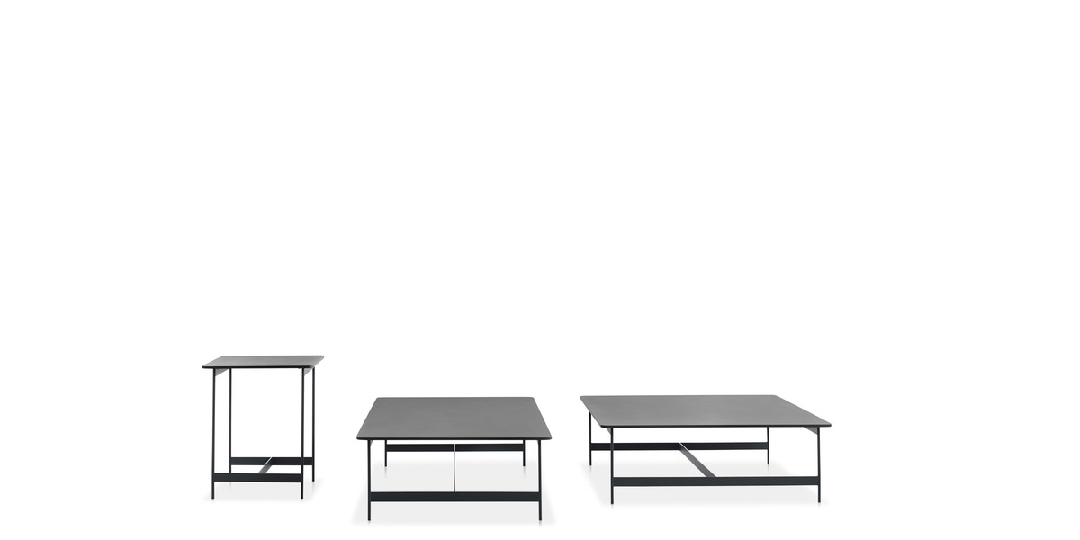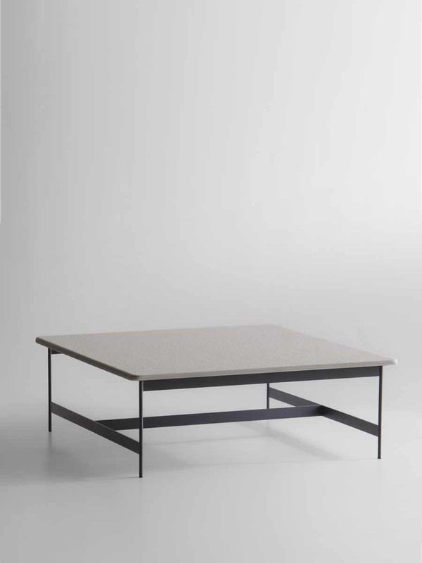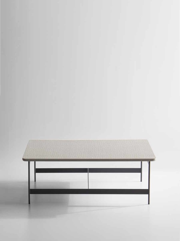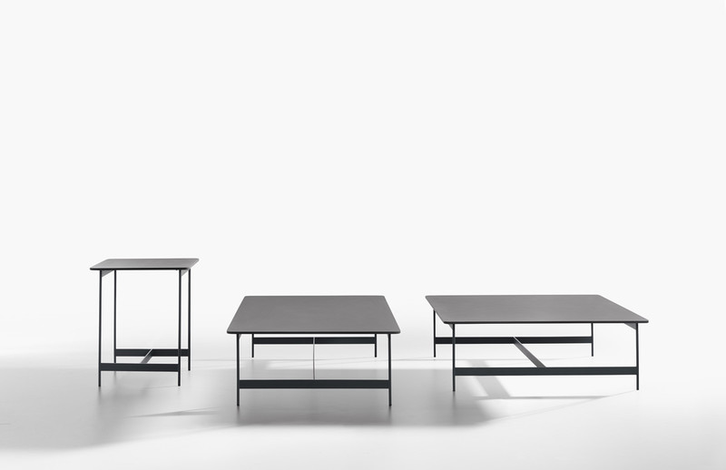 The rigorous anthracite embossed lacquered metal frame animates the design of the Little T coffee tables.