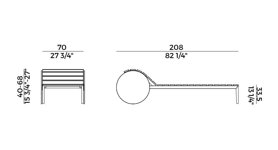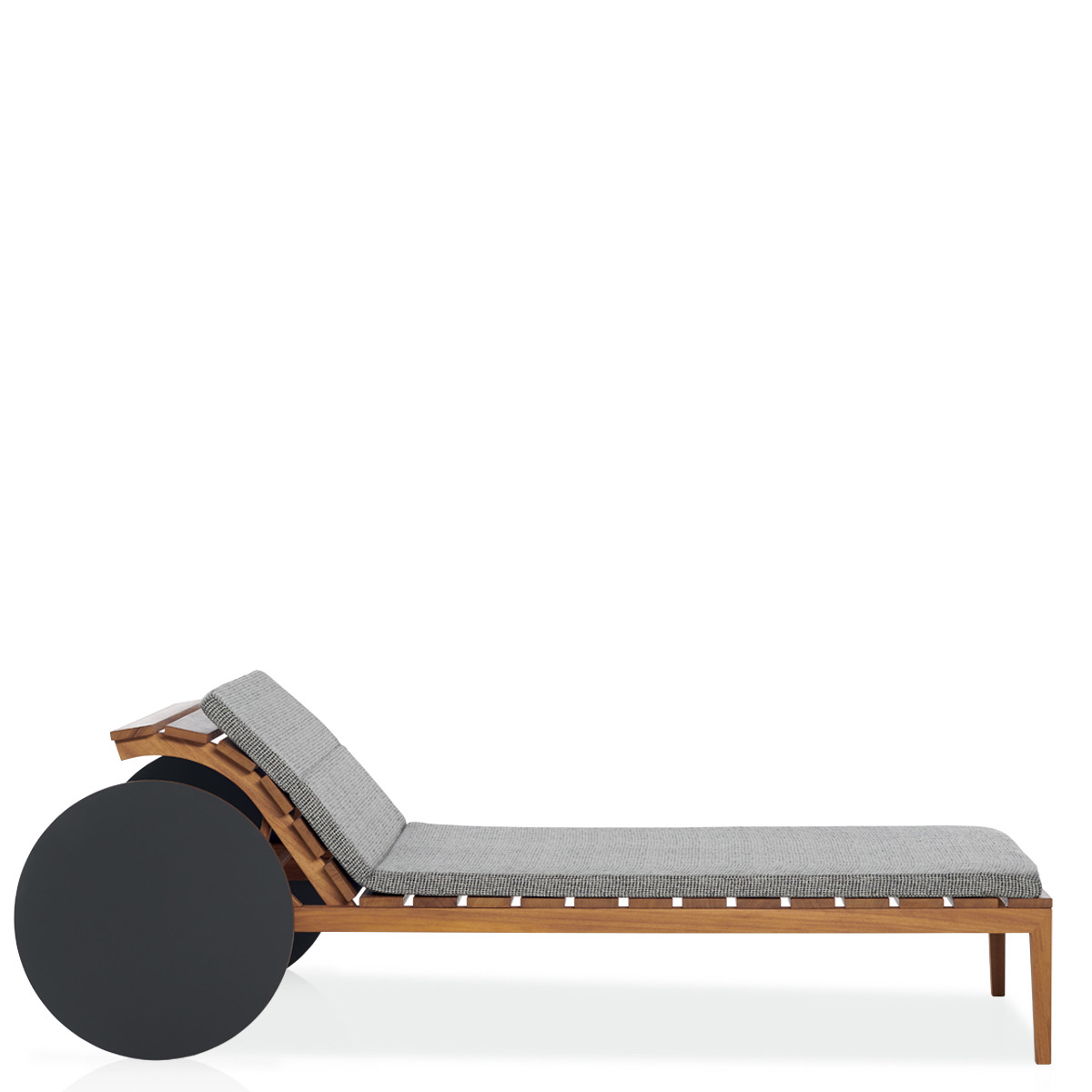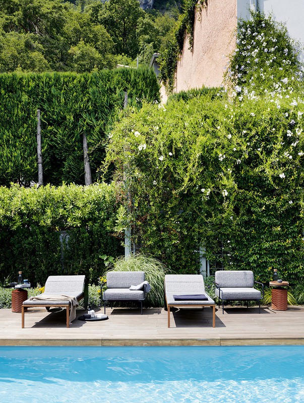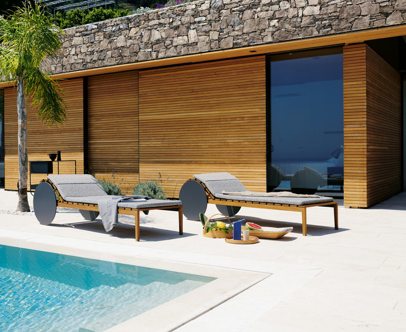 With a structure in solid Iroko wood slats, accompanied by an optional mattress padded in DryFeel, Suno has a backrest adjustable at different inclinations, giving the possibility to enjoy outdoor relaxation in the name of maximum comfort.
