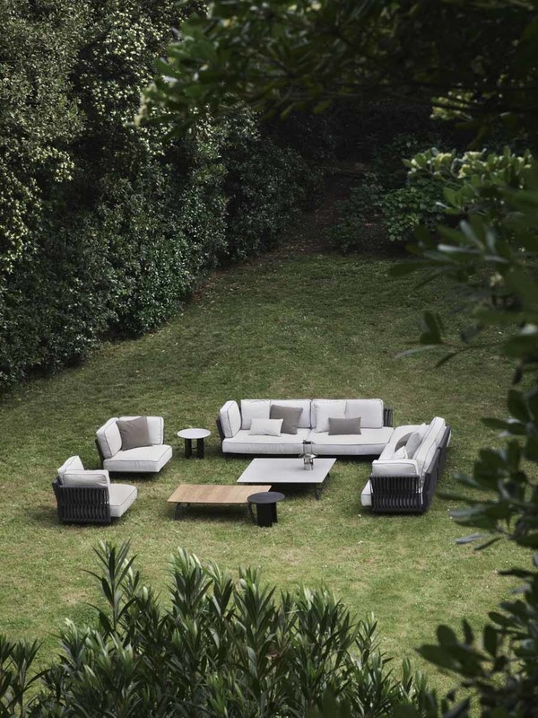The modularity of the frame allows you to structure armchairs and sofas in closed, double-sided or corner compositions, with integrated pouf and chaise longue.