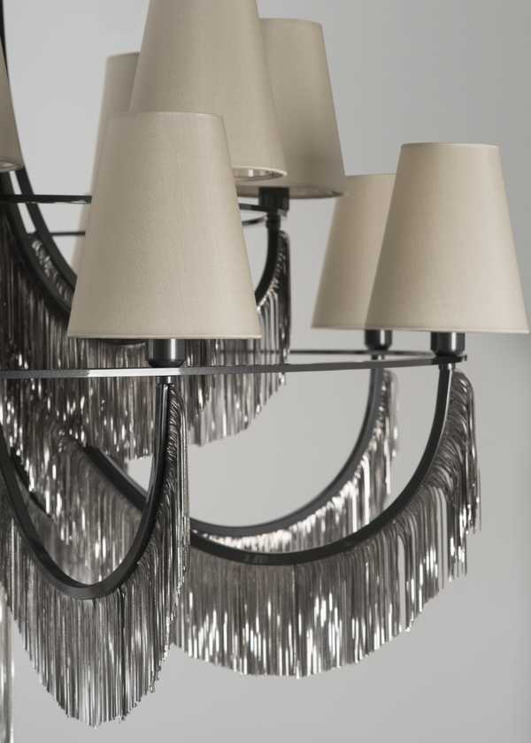 Haughty and exuberant, like a charleston dancer: this is Vanitosa, dressed in shining fringes that move along the body movements. A peculiarity of this collection is its great range of available fi nishes and fabrics.