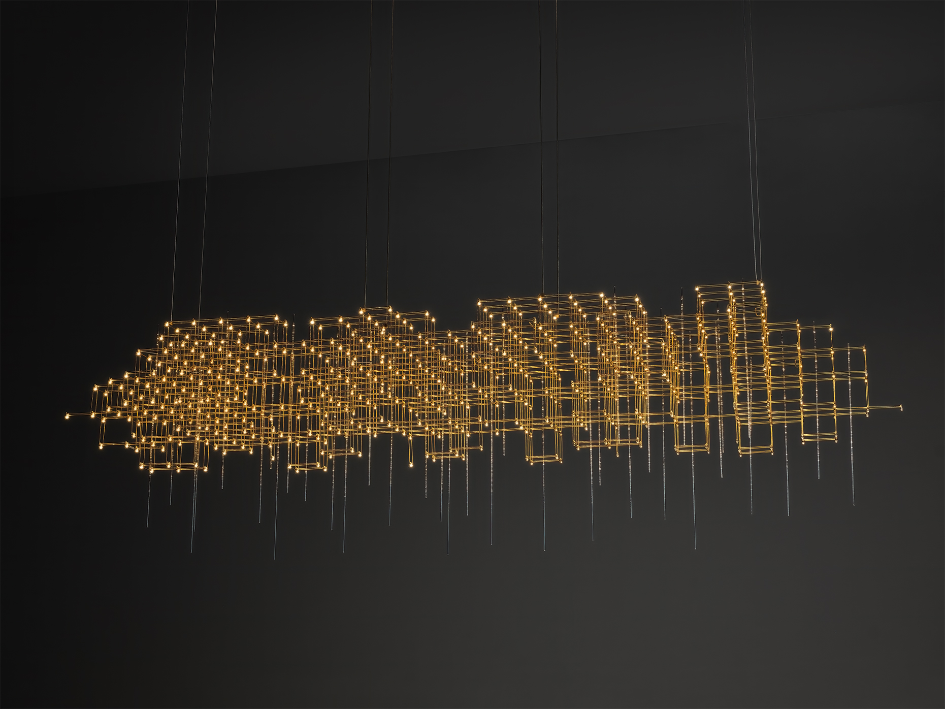 As an extension of the Cosmos Globe series. A very subtle frame is carrying the light sculpture without affecting its unique appearance. Perfect in an open spacr, in front of a wall or in a corner.